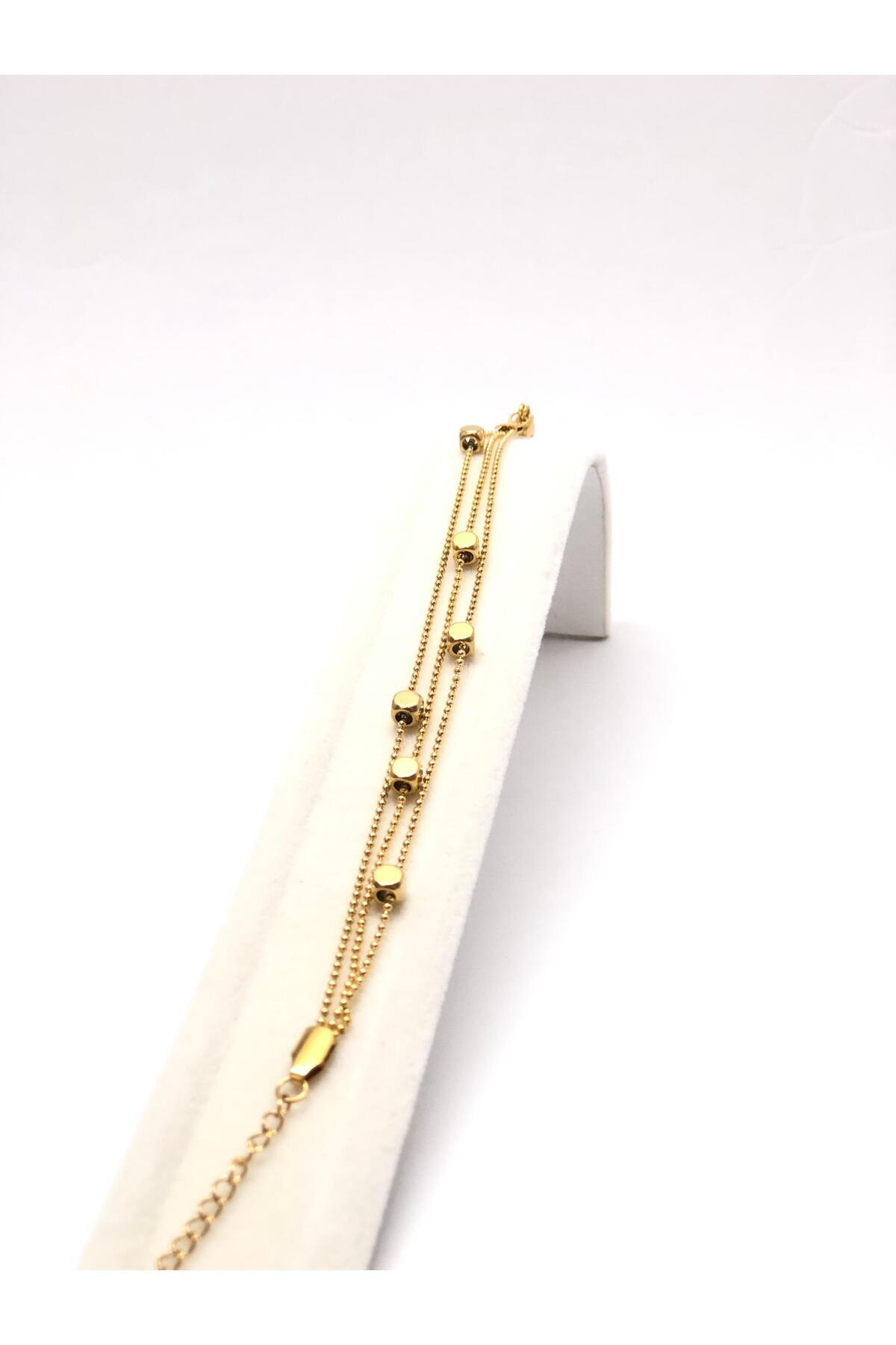 Sıralı Kare Gold Renk Çelik Bilekli Sıralı Kare Gold Renk Çelik Bilekli LC-B0020 Standart