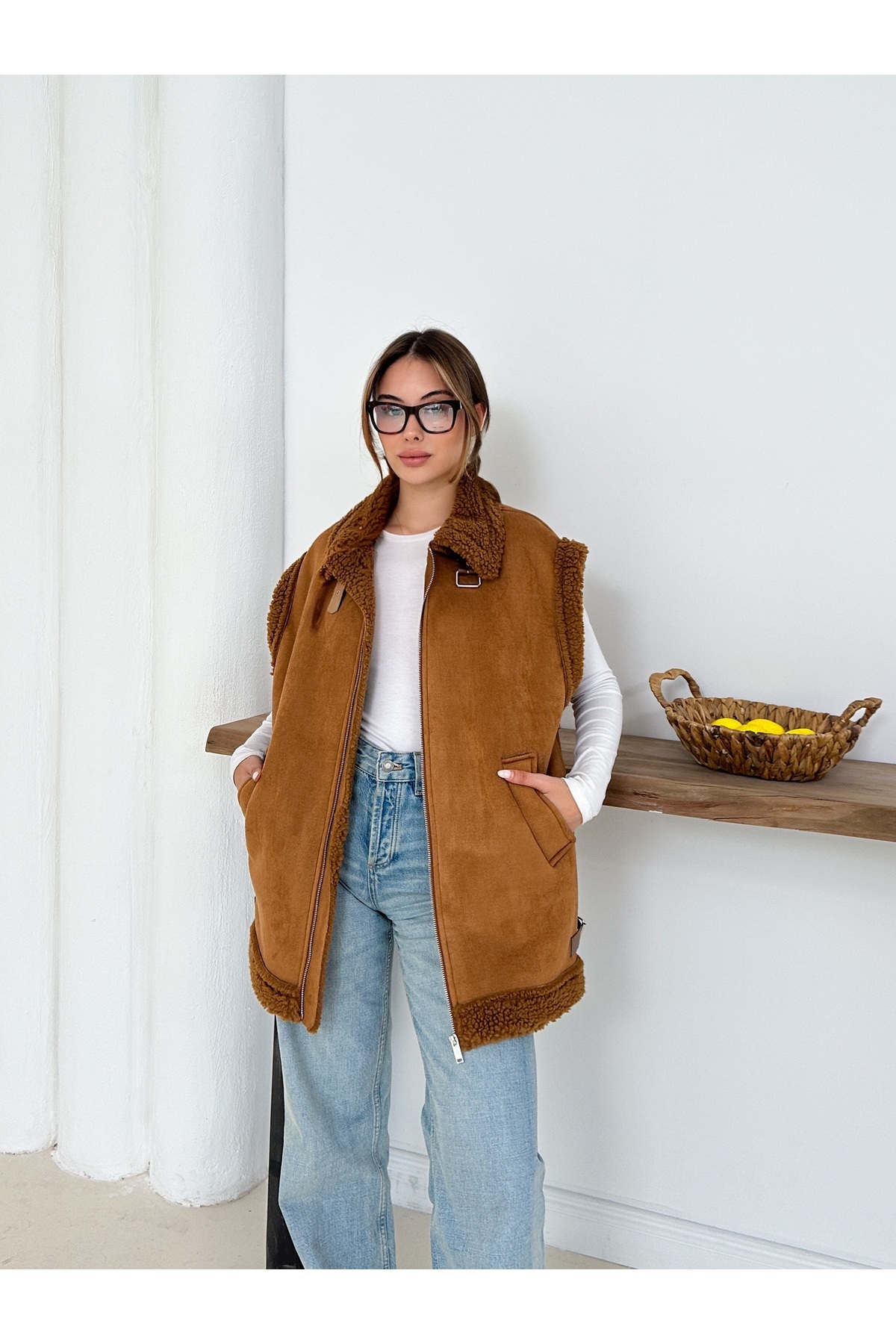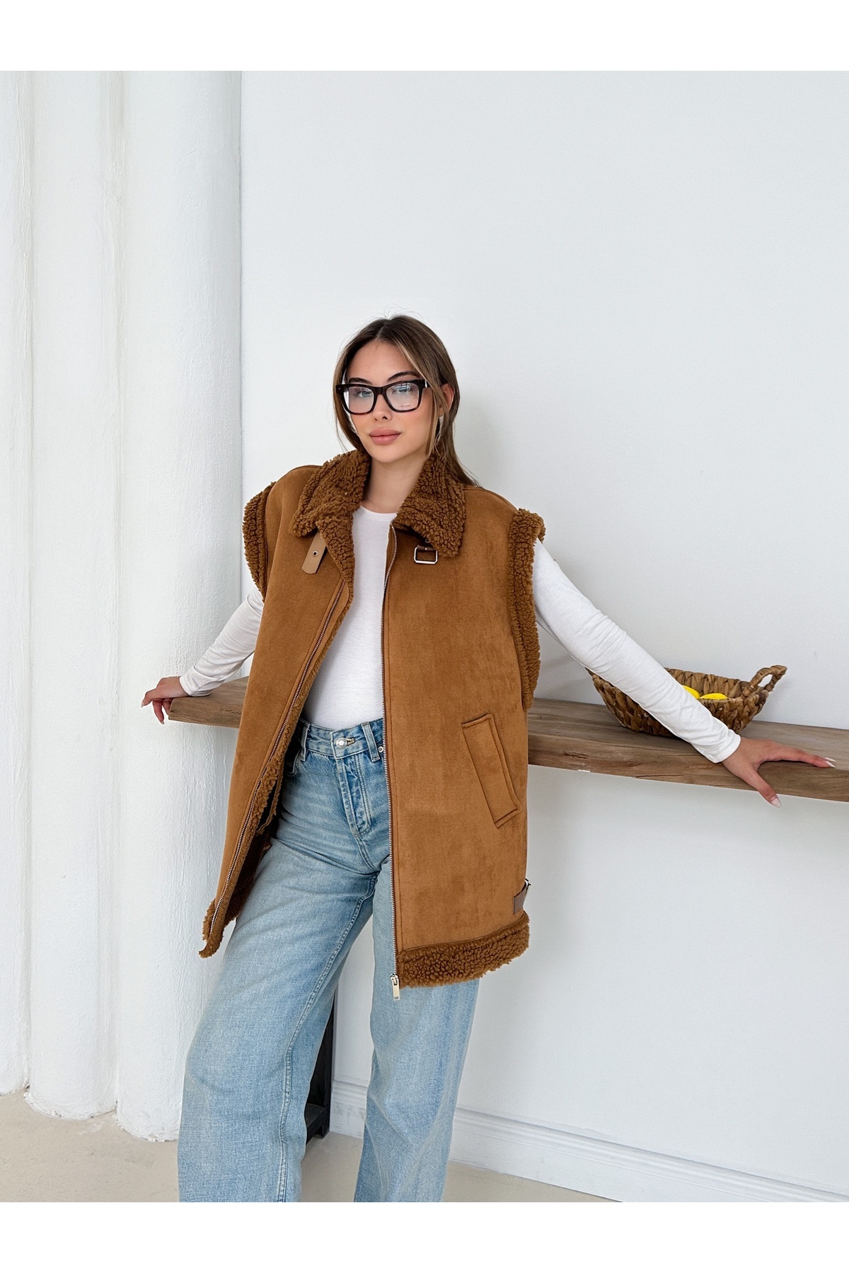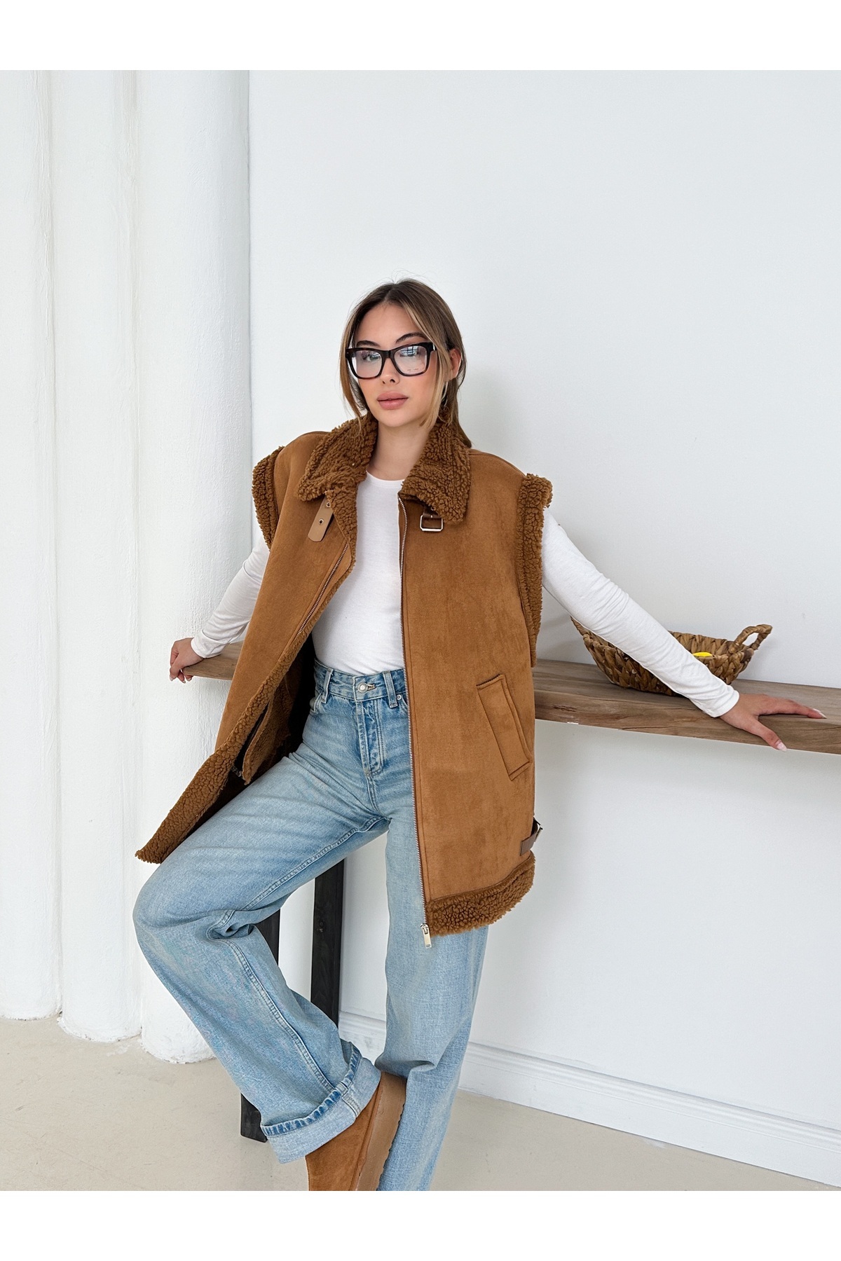 Oversize Süet Biker Yelek Oversize Süet Biker Yelek SND1829500 XL