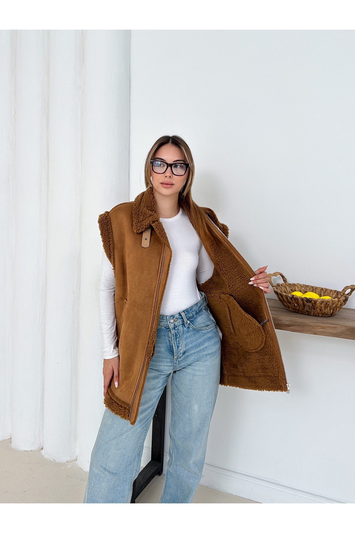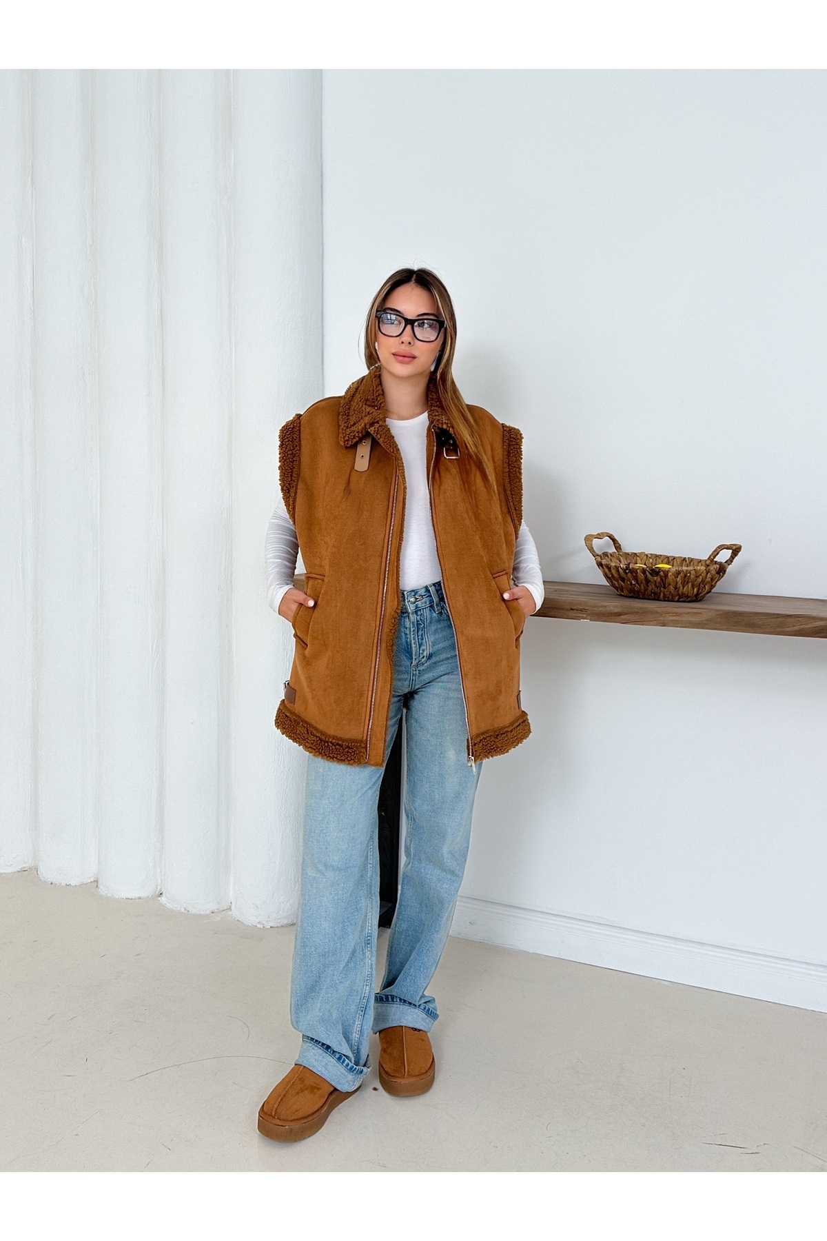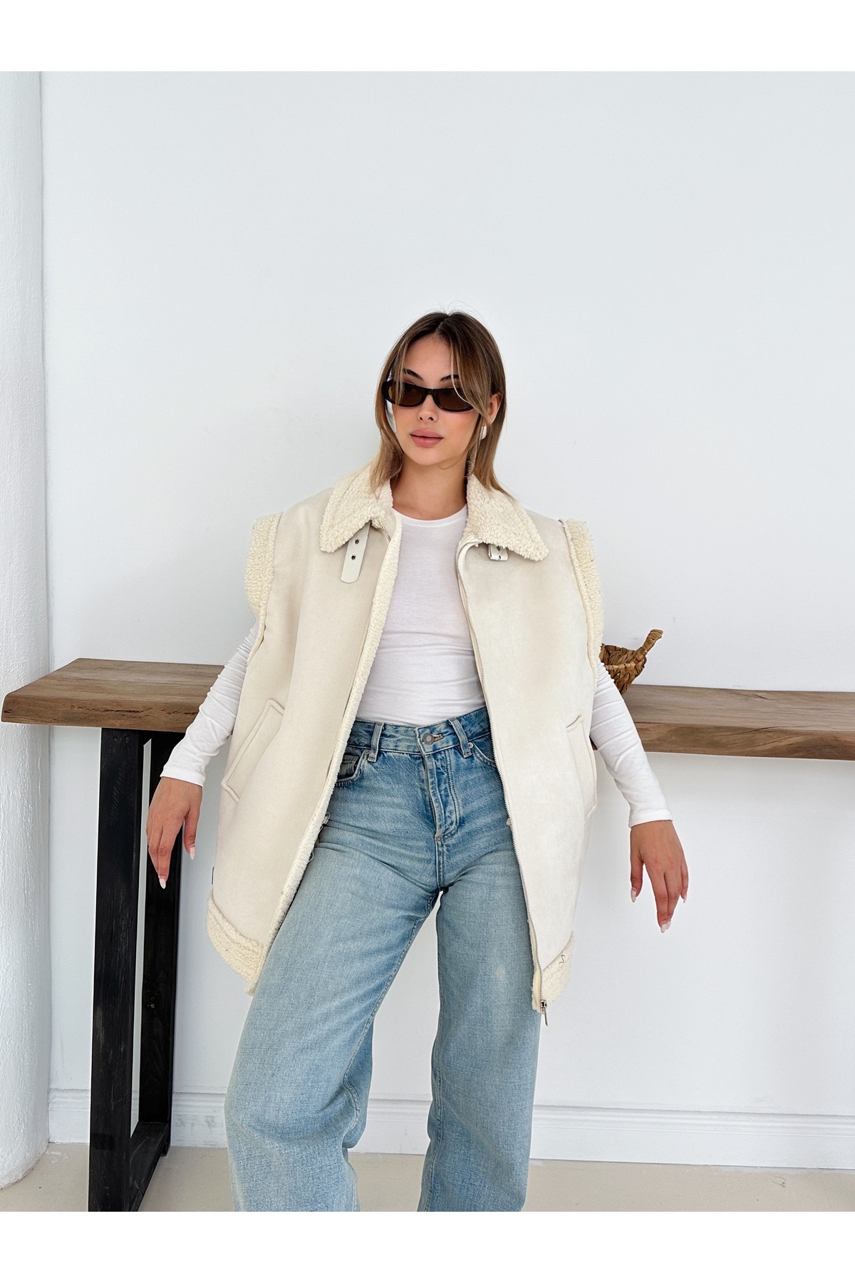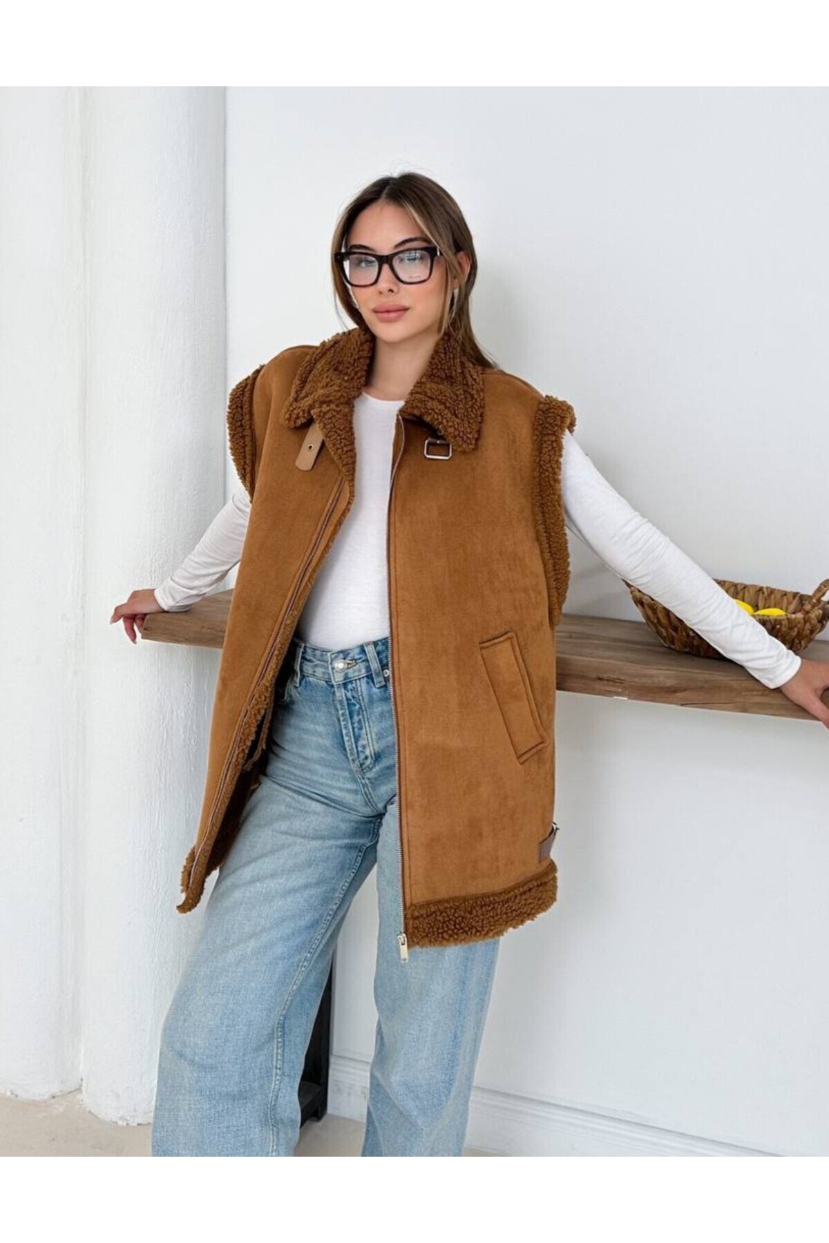 Oversize Süet Biker Yelek Oversize Süet Biker Yelek SND1829500 XL