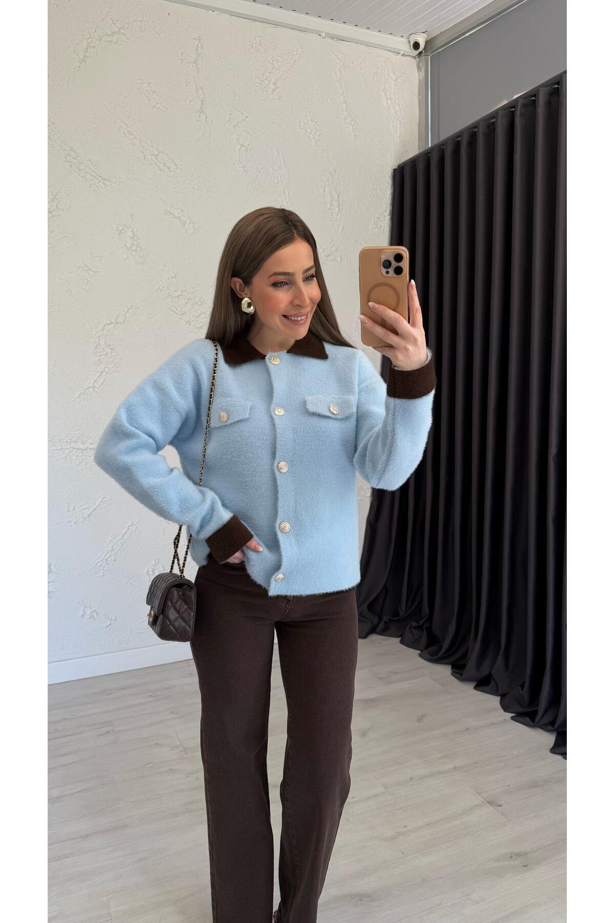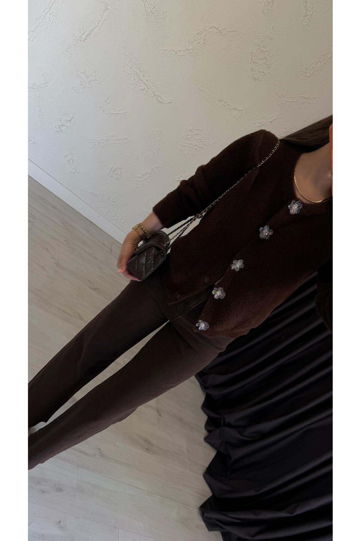 Çiçek Düğmeli Hırka Kahverengi Çiçek Düğmeli Hırka Kahverengi 7599 Standart