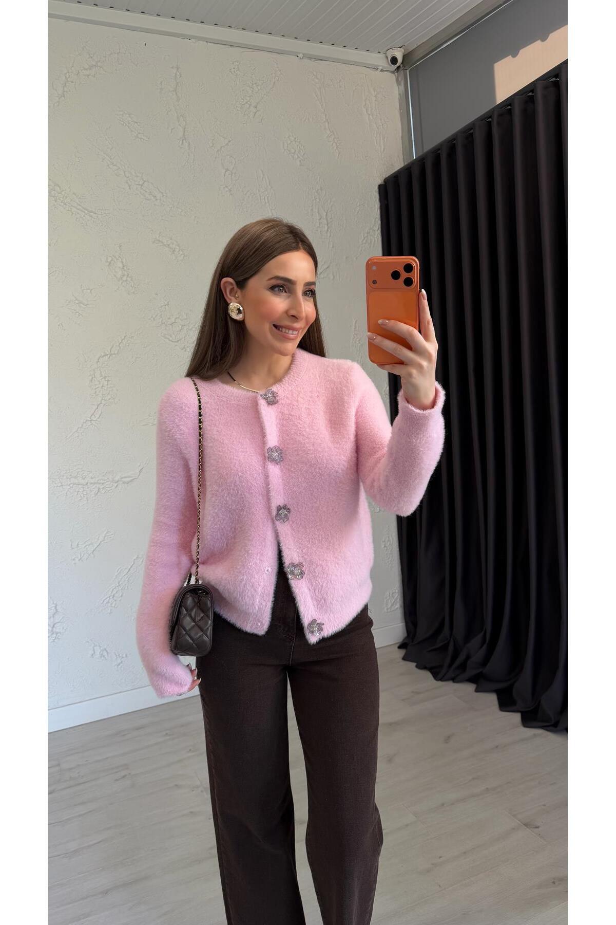 Çiçek Düğmeli Hırka Şeker Pembe Çiçek Düğmeli Hırka Şeker Pembe 7600 Standart