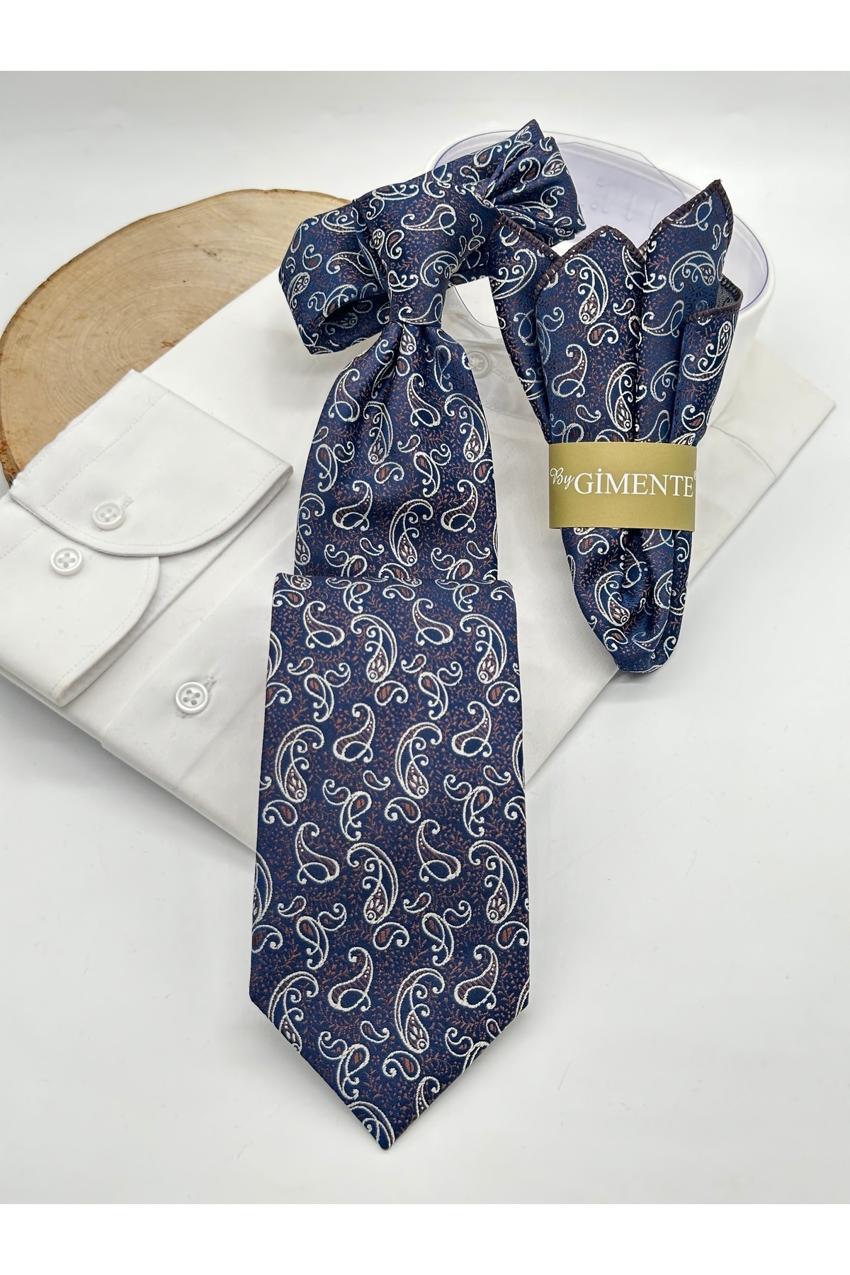 Saks Şal Desenli Mendilli Klasik Kravat Saks Şal Desenli Mendilli Klasik Kravat KK7-637 تک سایز