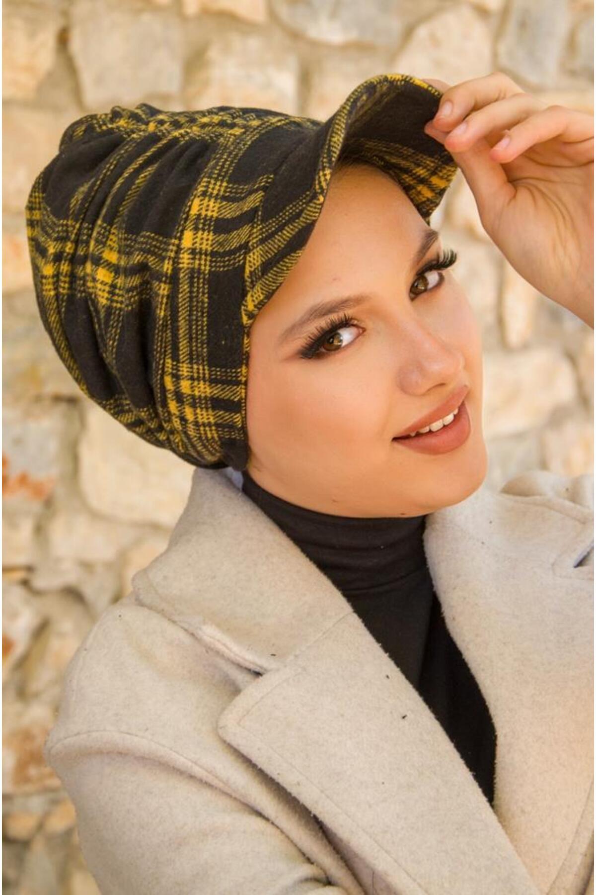 Siyah Hardal Ekose Desen Tesettür Şapka Siyah Hardal Ekose Desen Tesettür Şapka 30105 Standart