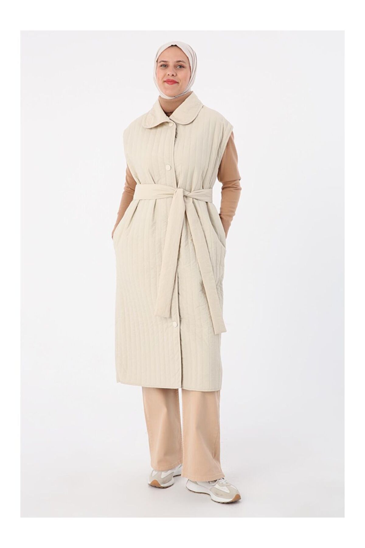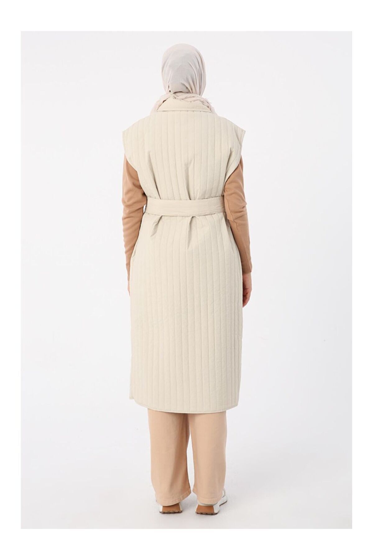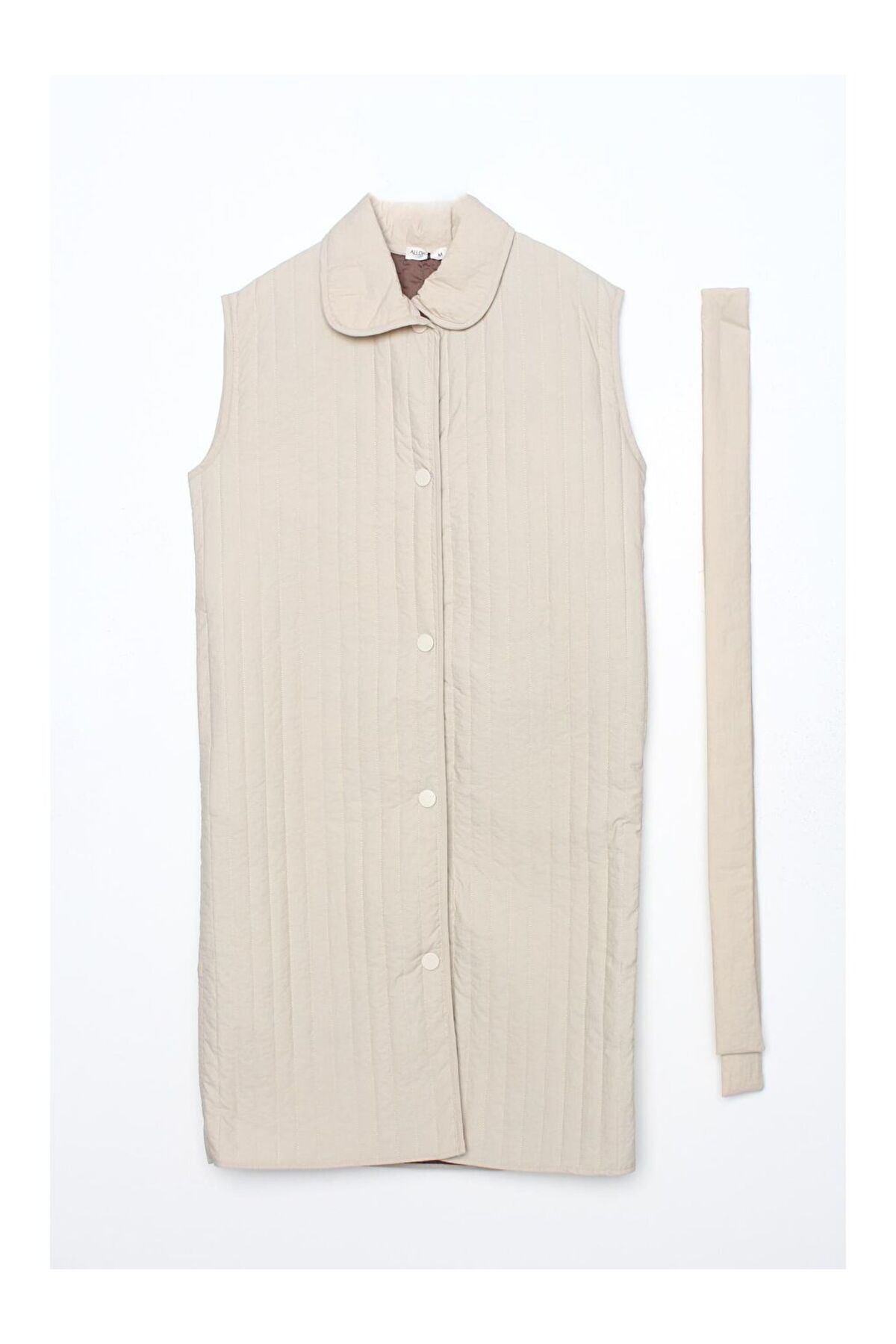 Bej Oversize Çıtçıtlı Dikey Çizgi Uzun Şişme Yelek Bej Oversize Çıtçıtlı Dikey Çizgi Uzun Şişme Yelek S000081303-19928 L