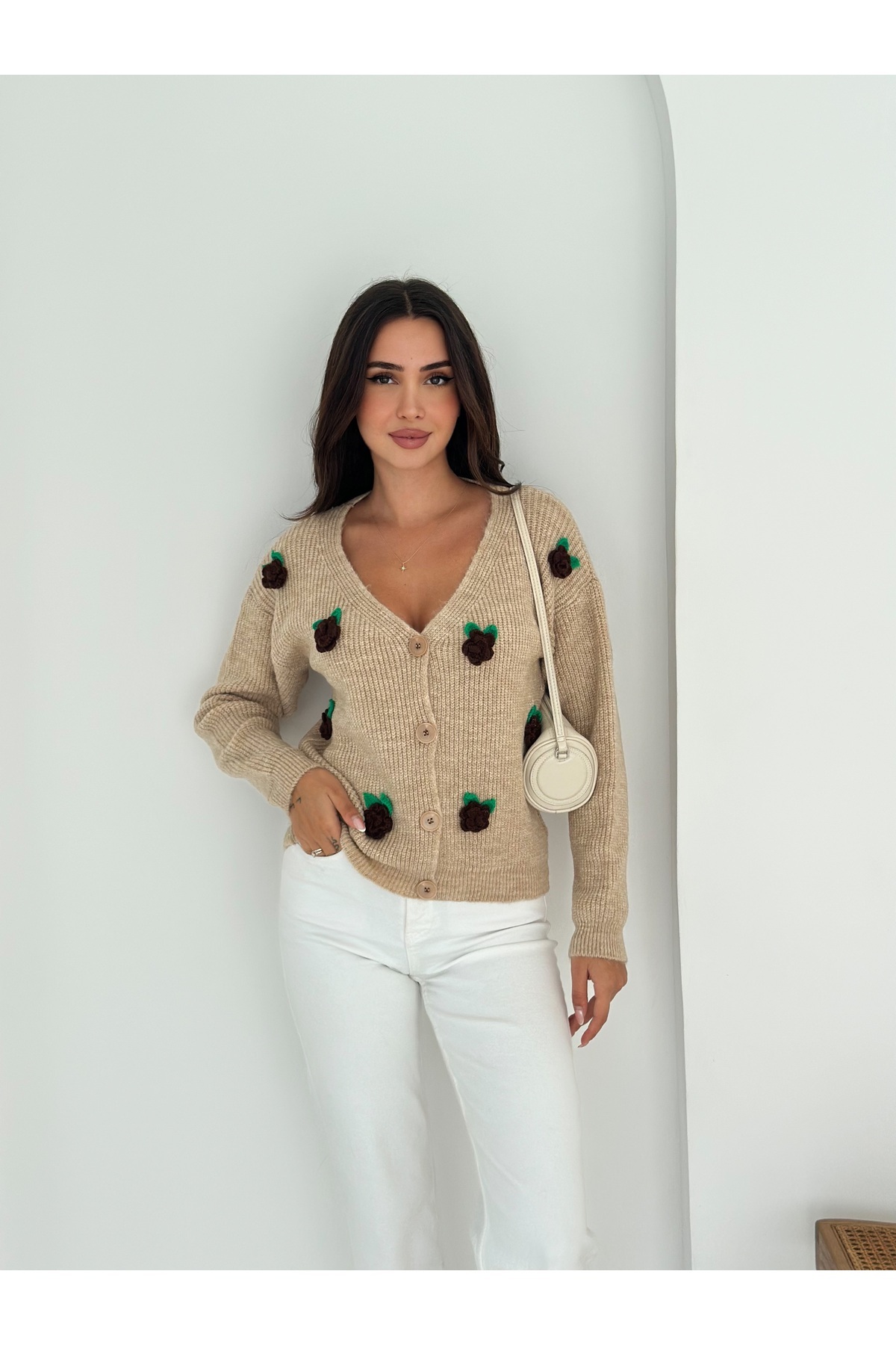 Gül Desenli Yumuşak Dokulu Düğmeli Triko Hırka Gül Desenli Yumuşak Dokulu Düğmeli Triko Hırka 548748578747FREJYA Standart