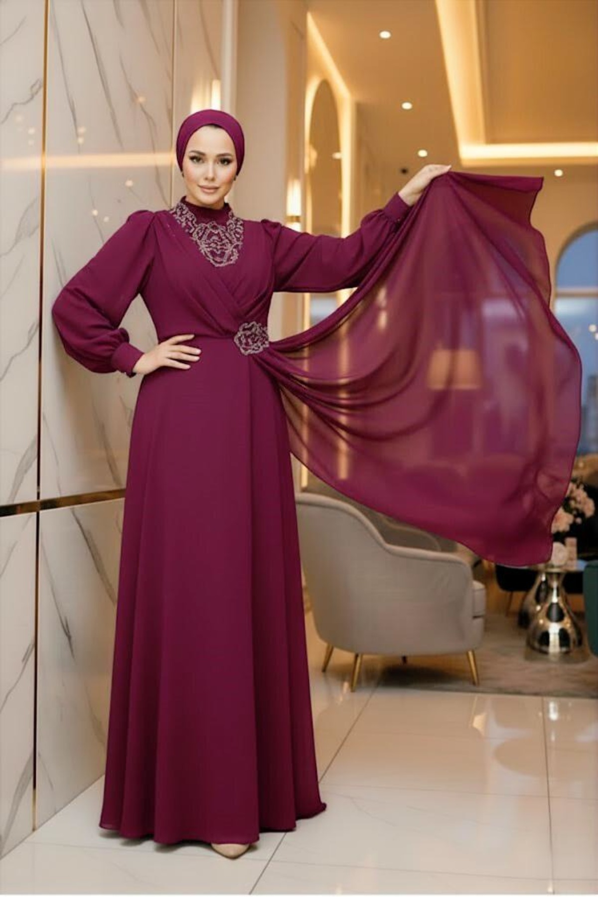 Petrol Mavisi Allerli Talşı Tesettür Abiye Elbise ALM52012PM Petrol Mavisi Allerli Talşı Tesettür Abiye Elbise ALM52012PM 38