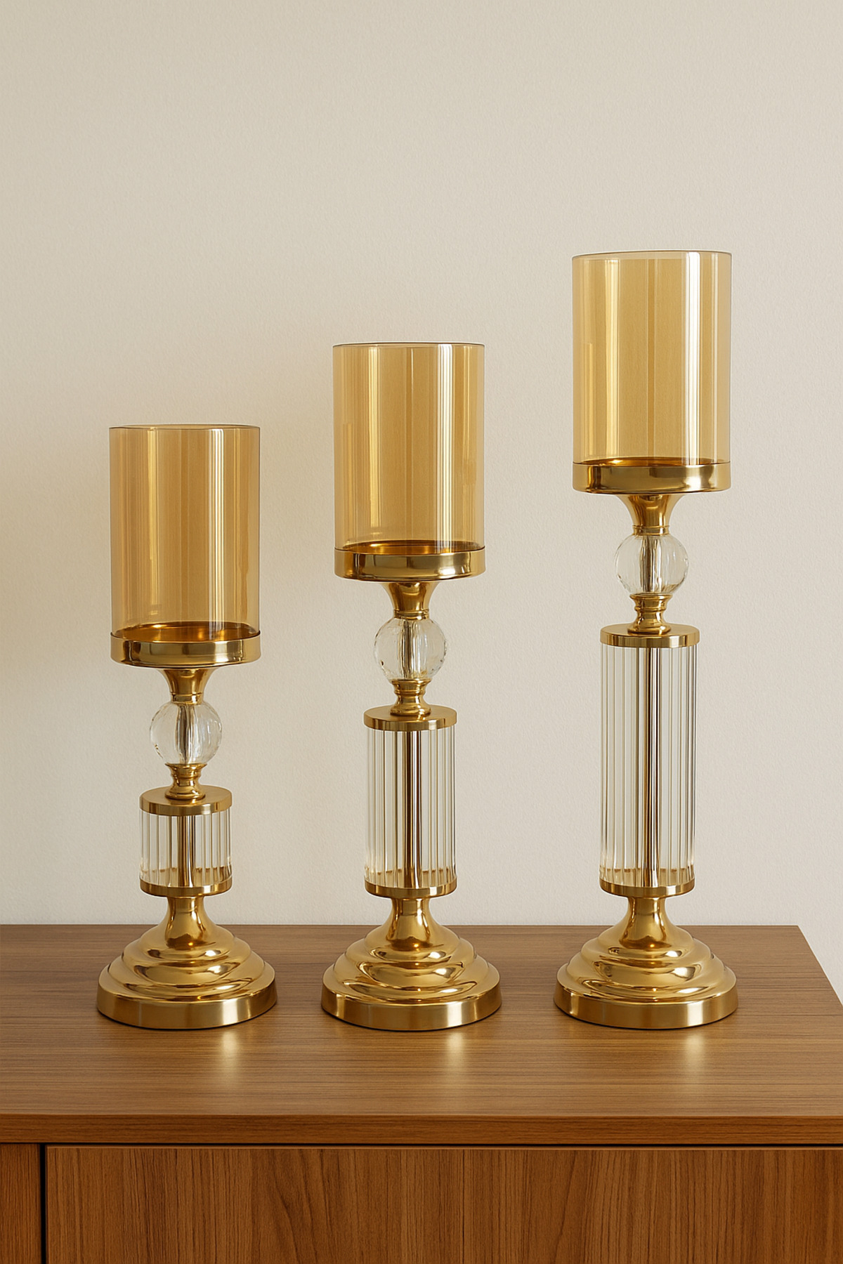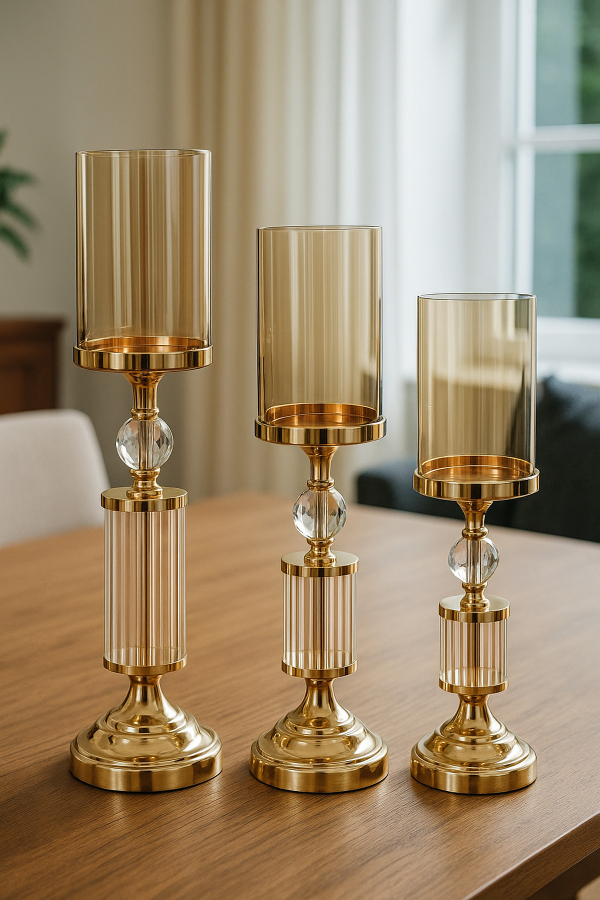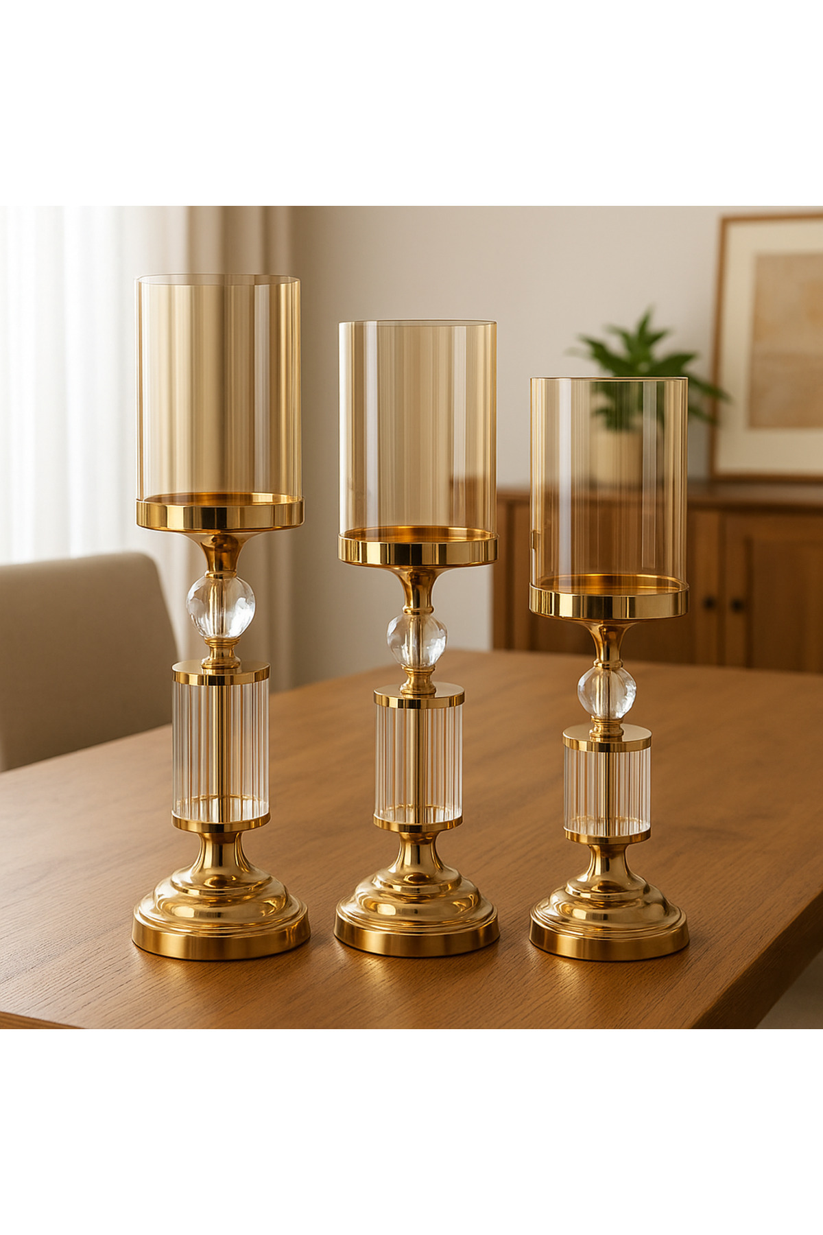 Modern Altın Cam Şamdan 3’lü Set Kristal Silindirik Tasarım Salon Yemek Masası Dekoratif Mumluk Modern Altın Cam Şamdan 3’lü Set Kristal Silindirik Tasarım Salon Yemek Masası Dekoratif Mumluk ÜCLÜLÜKSGOLDMUMLUK تک سایز
