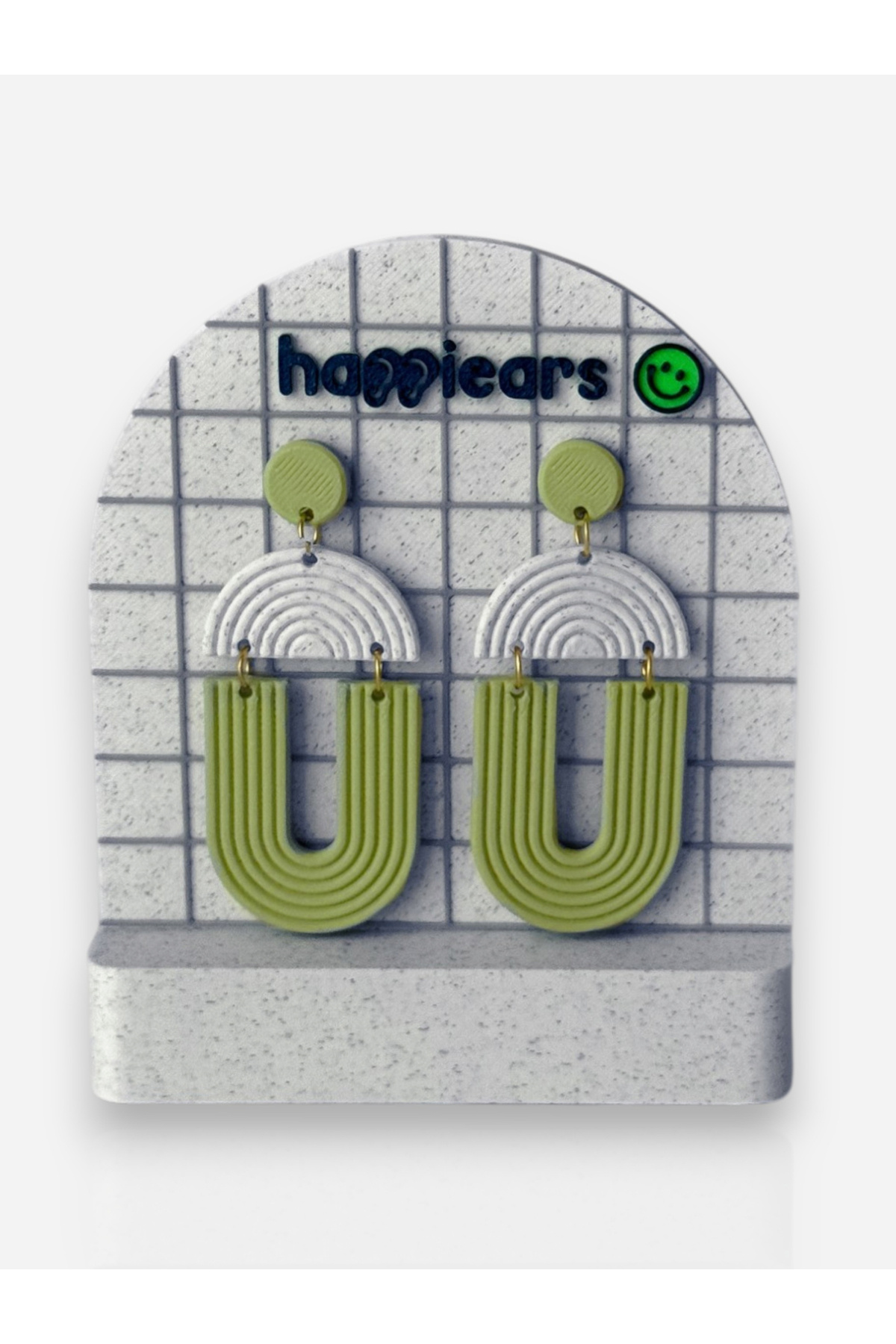 Yeşil ve Beyaz Yarım Daire Desenli Modern Tasarım Küpe Yeşil ve Beyaz Yarım Daire Desenli Modern Tasarım Küpe LR_KUPE_012 تک سایز