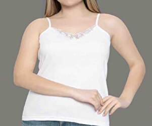 Beyaz 100% Pamuk Kadın Güpürlü Ip Askılı Atlet- 220 Beyaz 100% Pamuk Kadın Güpürlü Ip Askılı Atlet- 220 2XL