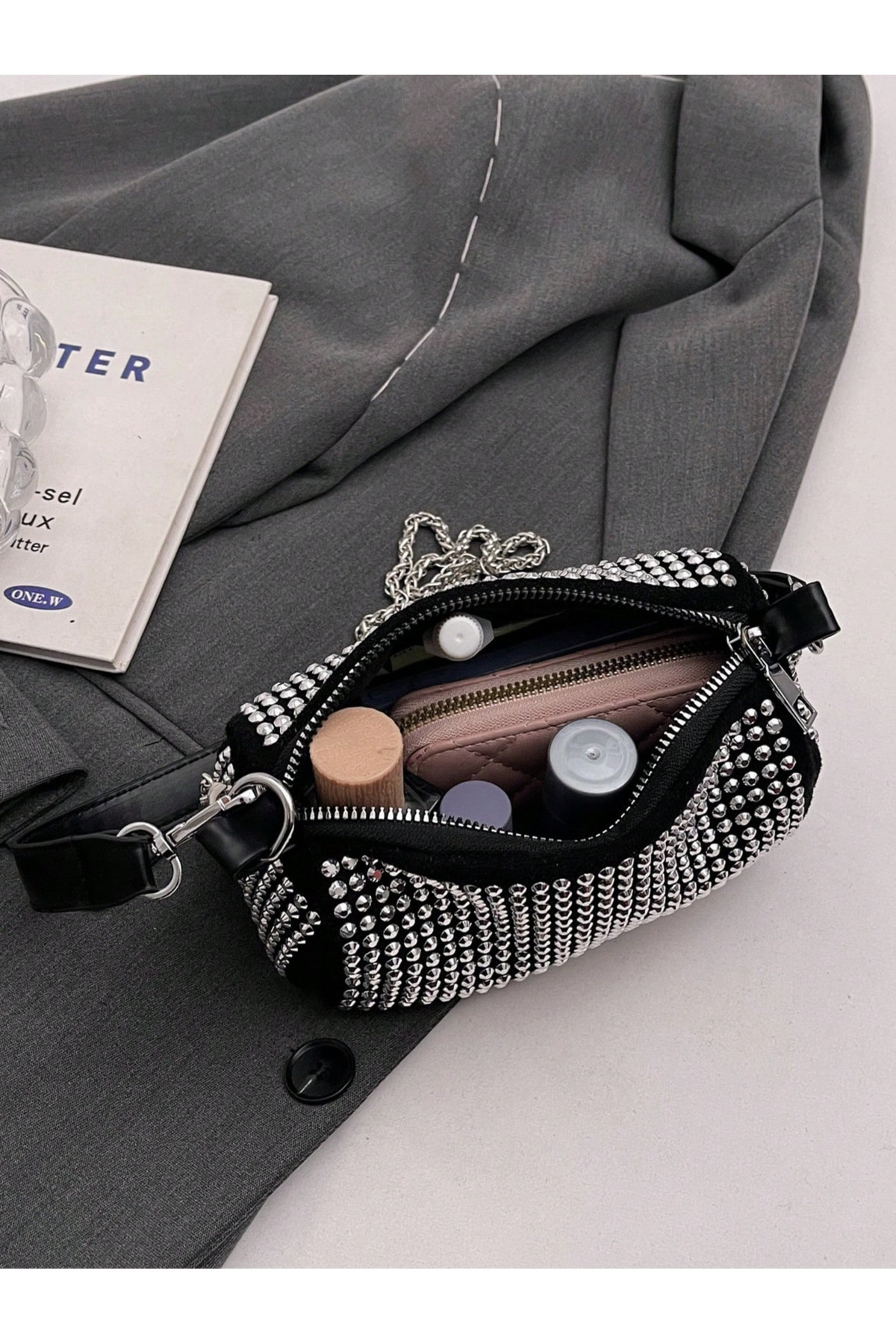 TAŞLI Siyah El Ve Çapraz Kadın Çanta TAŞLI Siyah El Ve Çapraz Kadın Çanta Taşlı تک سایز