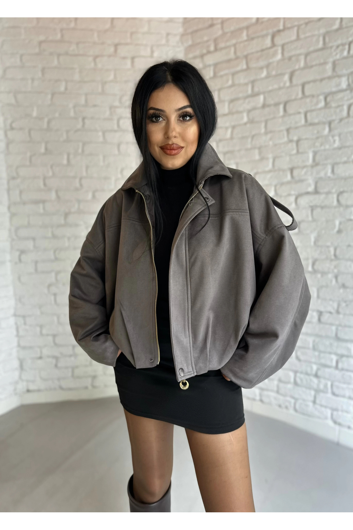 Oversize Süet Bomber Ceket Oversize Süet Bomber Ceket SND18292199 L