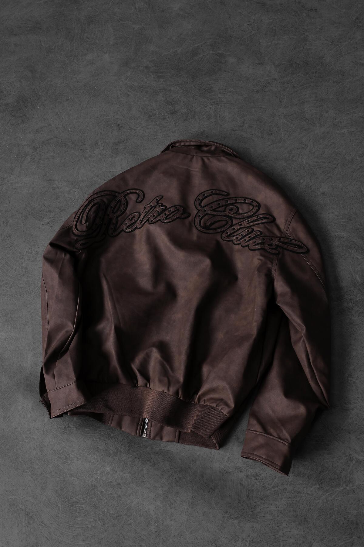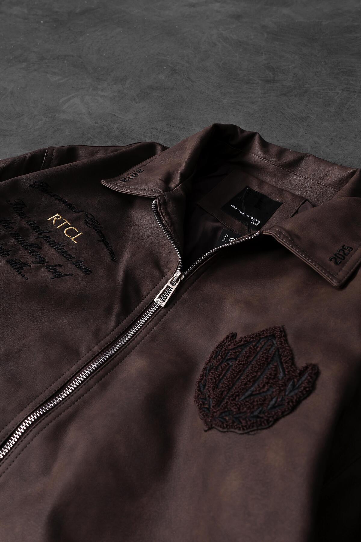 Erkek Kahverengi Champions Nakışlı Astarlı Deri Ceket Erkek Kahverengi Champions Nakışlı Astarlı Deri Ceket S8103 XL