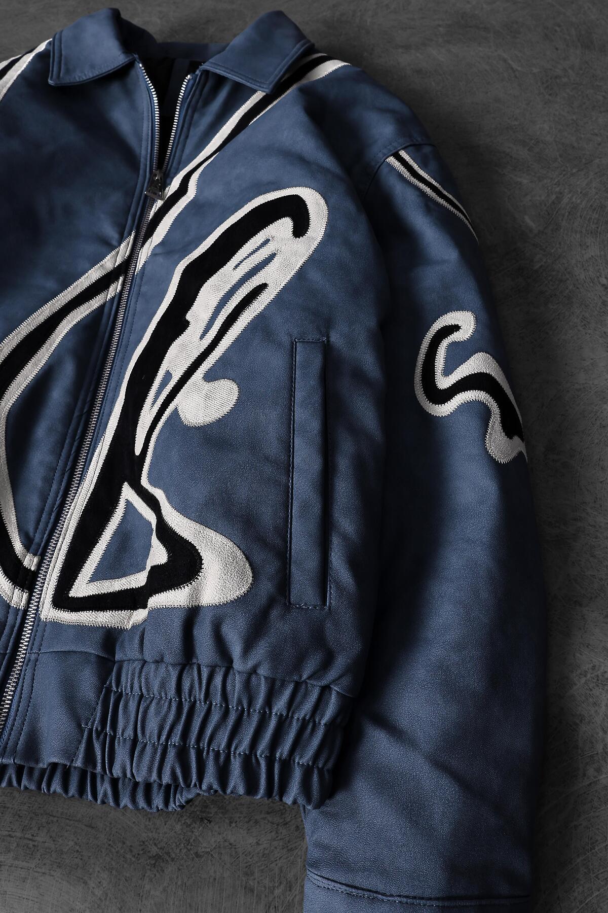 Erkek Lacivert Full Zip Nakışlı Garnili Astarlı Deri Ceket Erkek Lacivert Full Zip Nakışlı Garnili Astarlı Deri Ceket S8104 XL