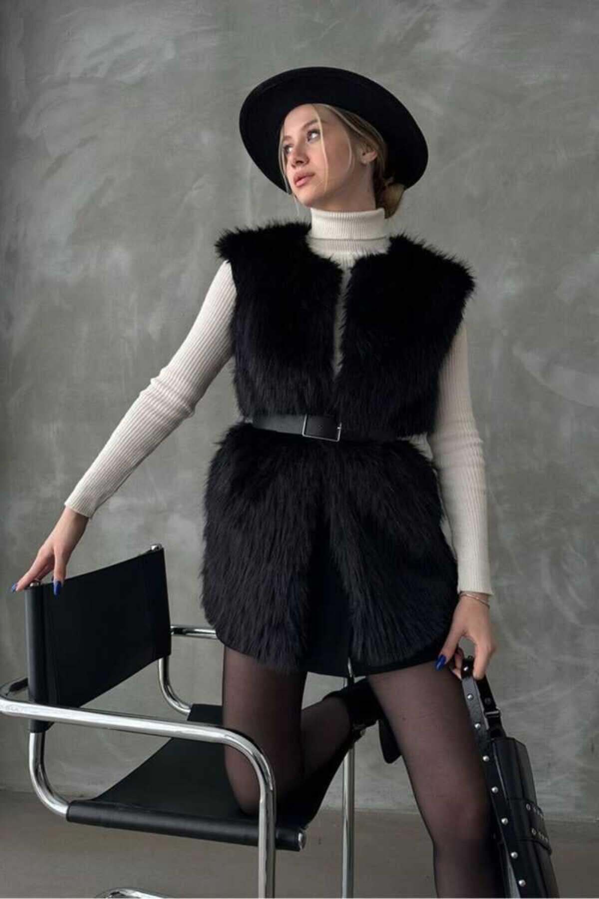 Siyah Tüylü Suni Yelek Siyah Tüylü Suni Yelek toptasyelek L