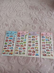 Premium Araç Temalı Çıkartma Seti – Renkli 3D Sticker Koleksiyonu