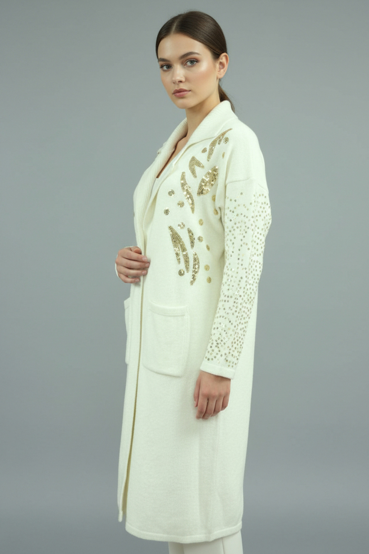Krem Pul İşlemeli Uzun Triko Hırka Krem Pul İşlemeli Uzun Triko Hırka 5 L