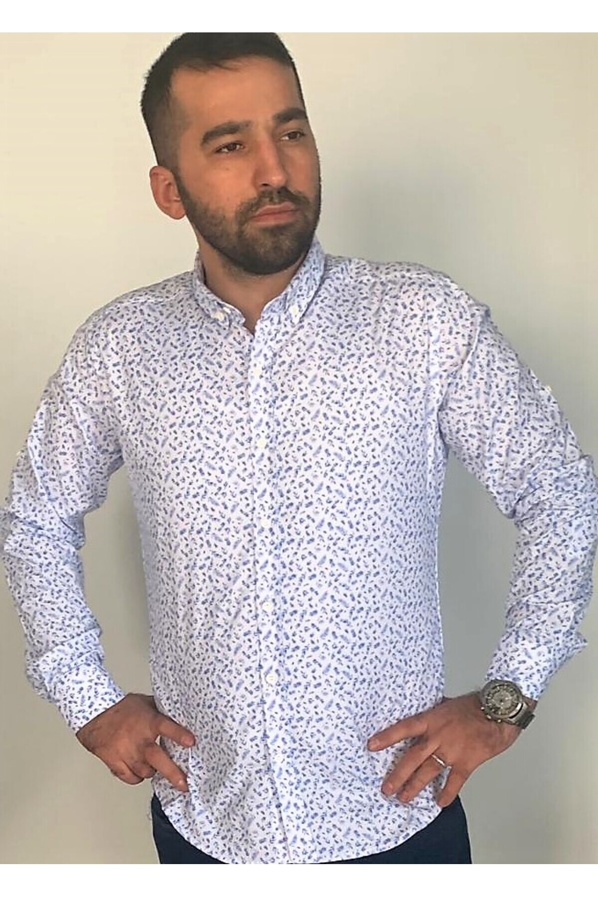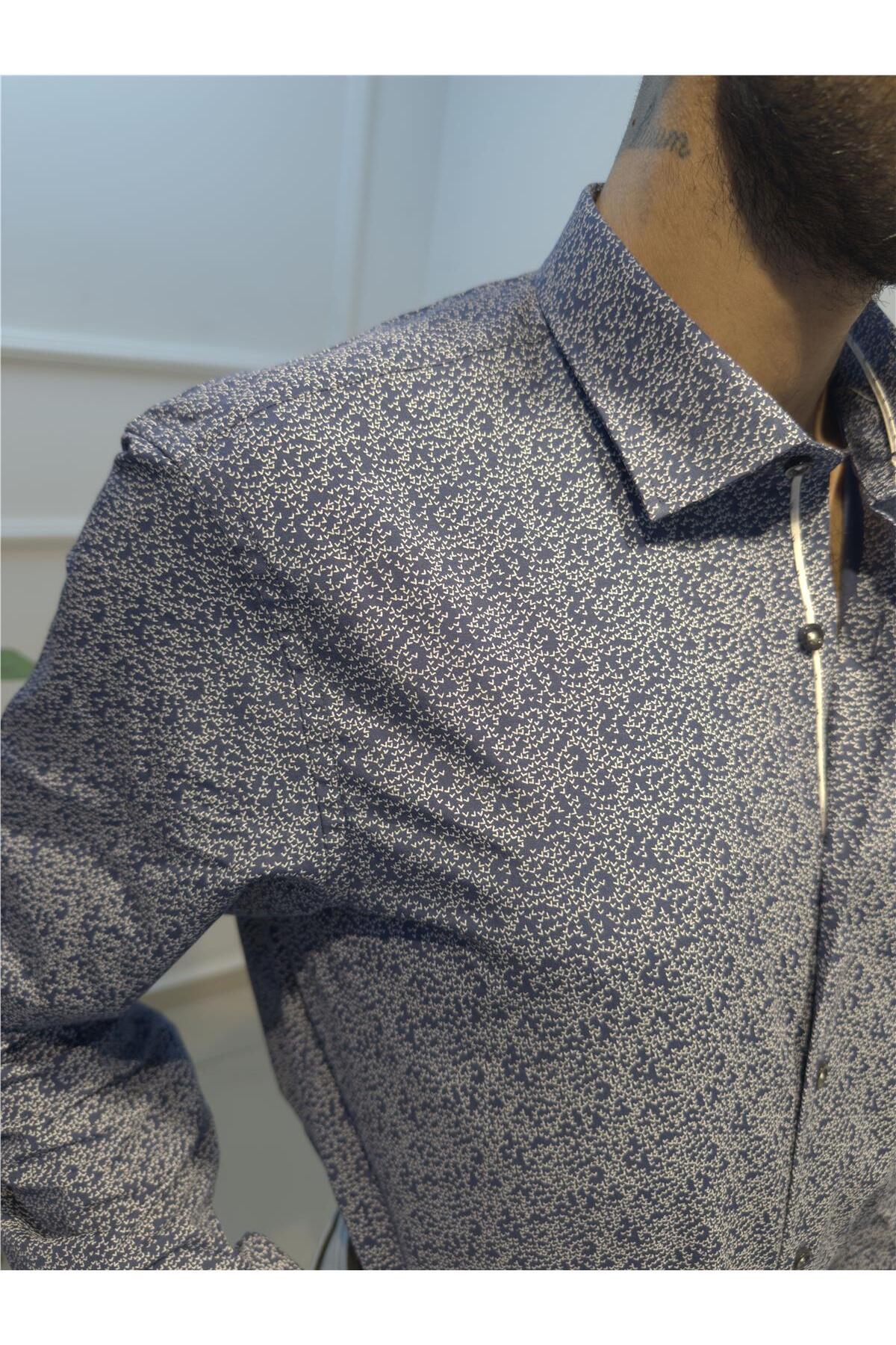 Lacivert Beyaz Desenli Uzun Kollu Slim Fit Erkek Gömlek Lacivert Beyaz Desenli Uzun Kollu Slim Fit Erkek Gömlek MDZMAN-004 XL