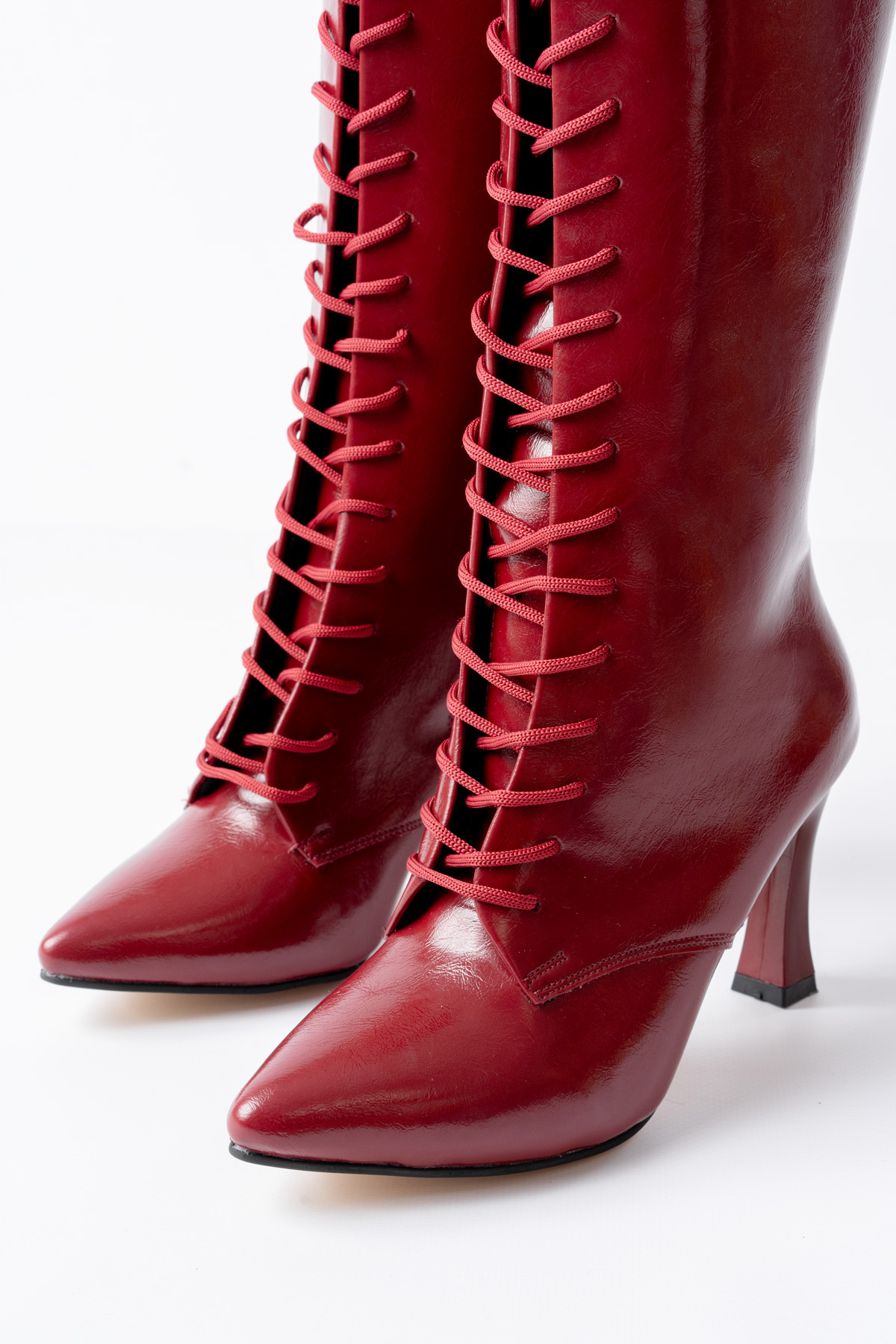 RACHEL Kadın Bağcıklı Fermuarlı Kadın Bordo Rugan Çizme RACHEL Kadın Bağcıklı Fermuarlı Kadın Bordo Rugan Çizme B223-798 40