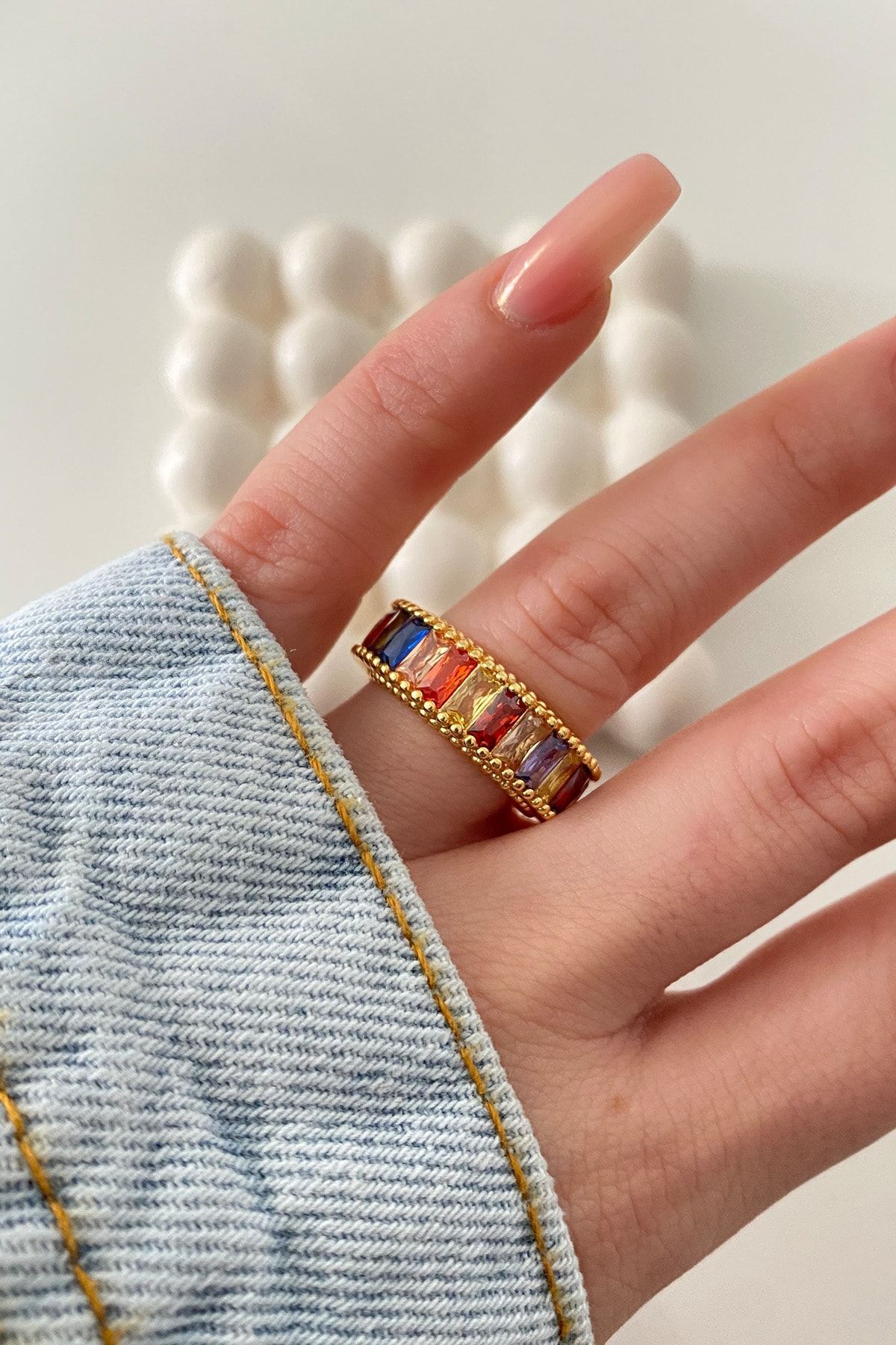 Renkli Baget Zirkon Taşlı Tam tur Çelik Yüzük Renkli Baget Zirkon Taşlı Tam tur Çelik Yüzük YZK-21 18