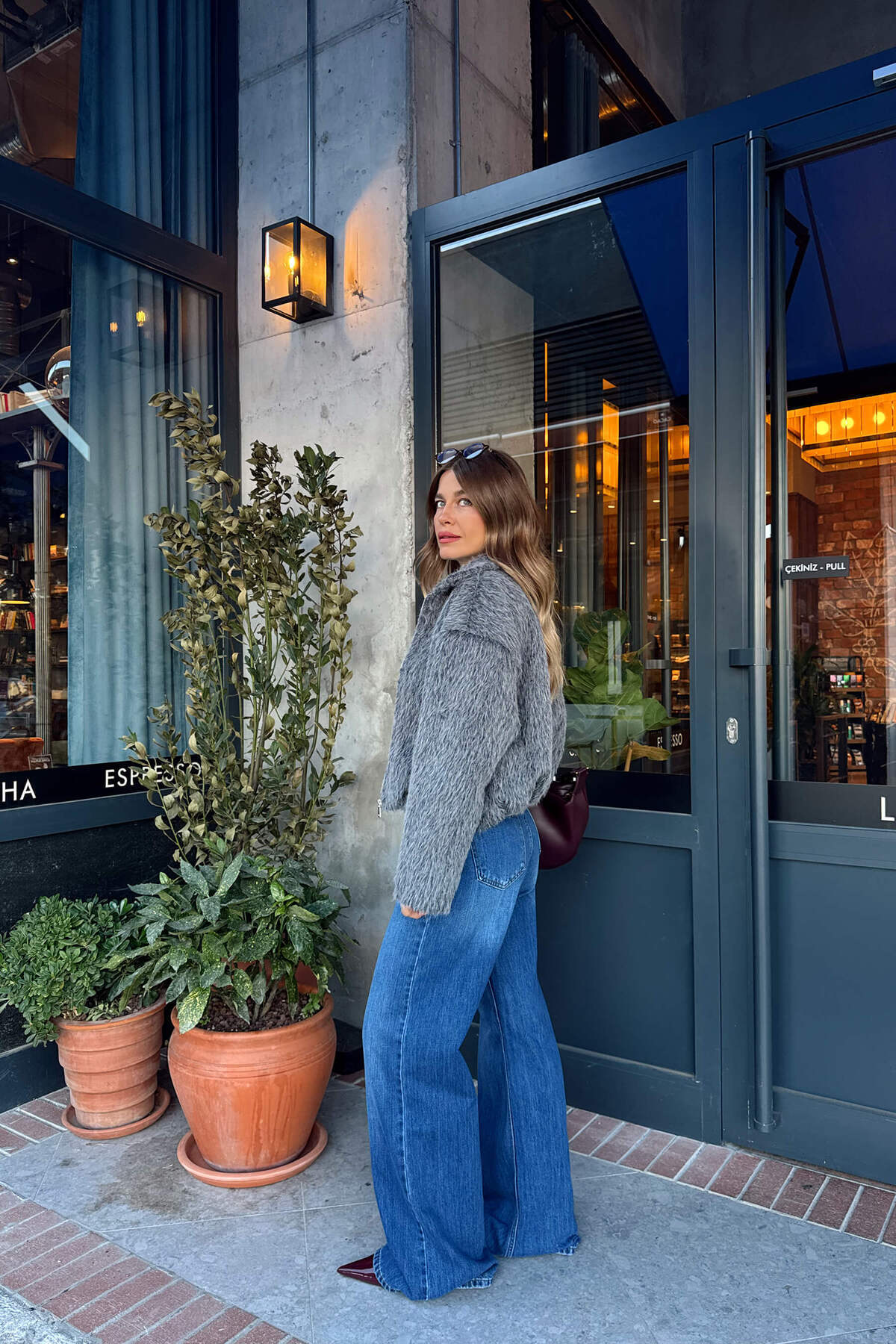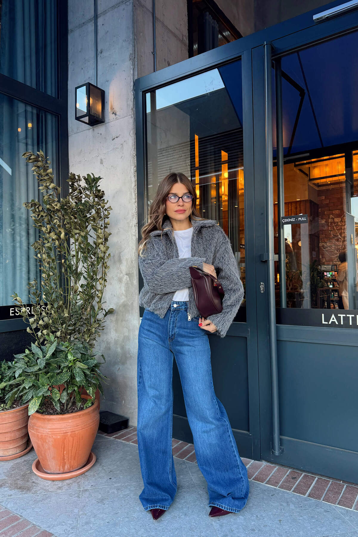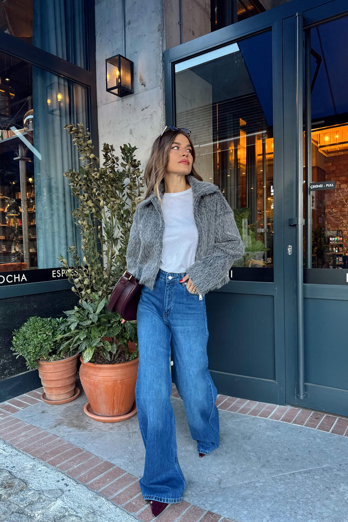 Antrasit Gömlek Yaka Kürk Dokulu Astarlı Bomber Ceket Antrasit Gömlek Yaka Kürk Dokulu Astarlı Bomber Ceket CKT1051 XL