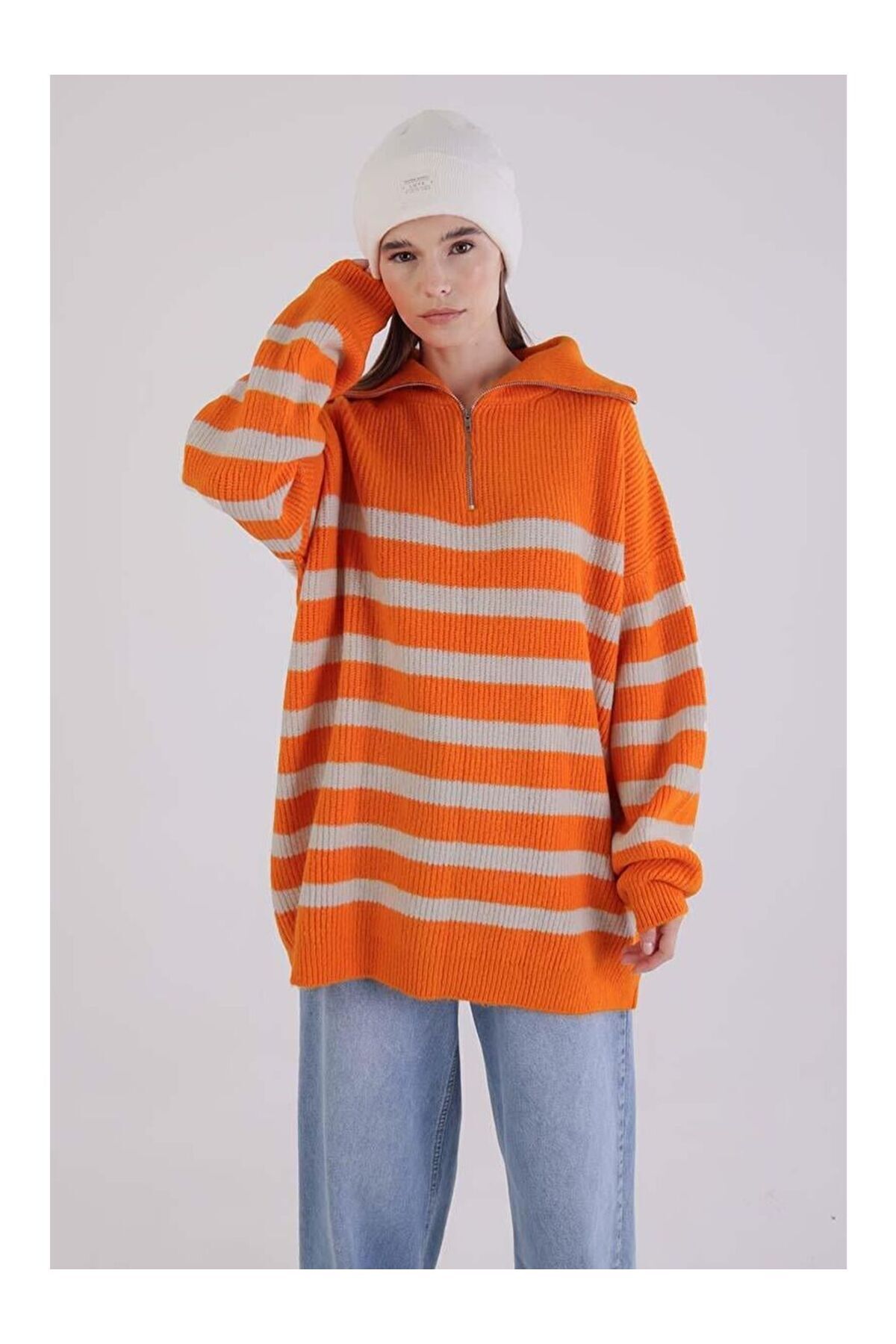 Oranj-Taş-Balıkçı Yaka Fermuarlı Triko Kazak Oranj-Taş-Balıkçı Yaka Fermuarlı Triko Kazak S000336750-20013 Standart