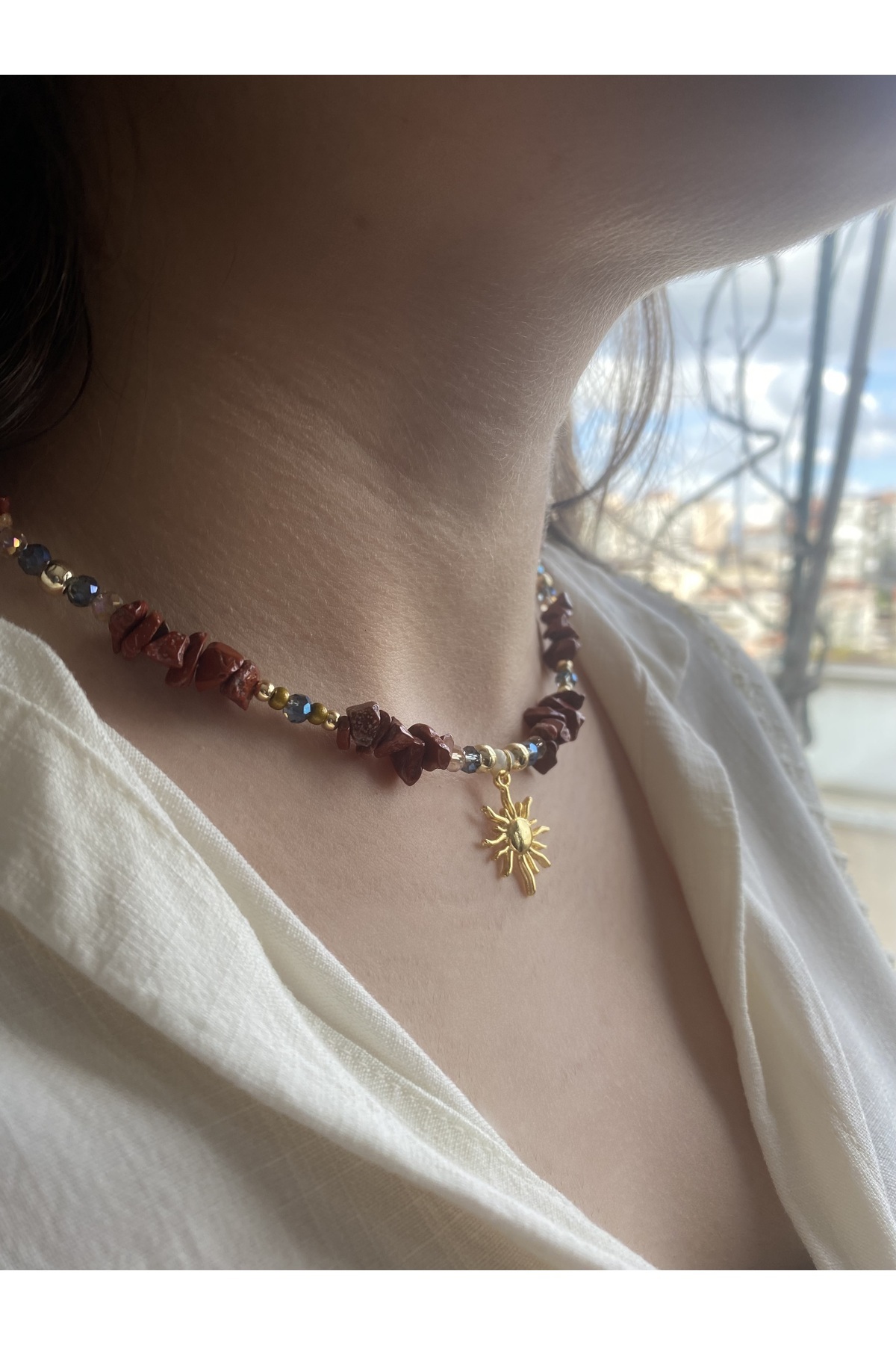 Kadın kırmızı mercan doğal taş tasarım güneş Çelik uçlu kolye Kadın kırmızı mercan doğal taş tasarım güneş Çelik uçlu kolye SS834 0