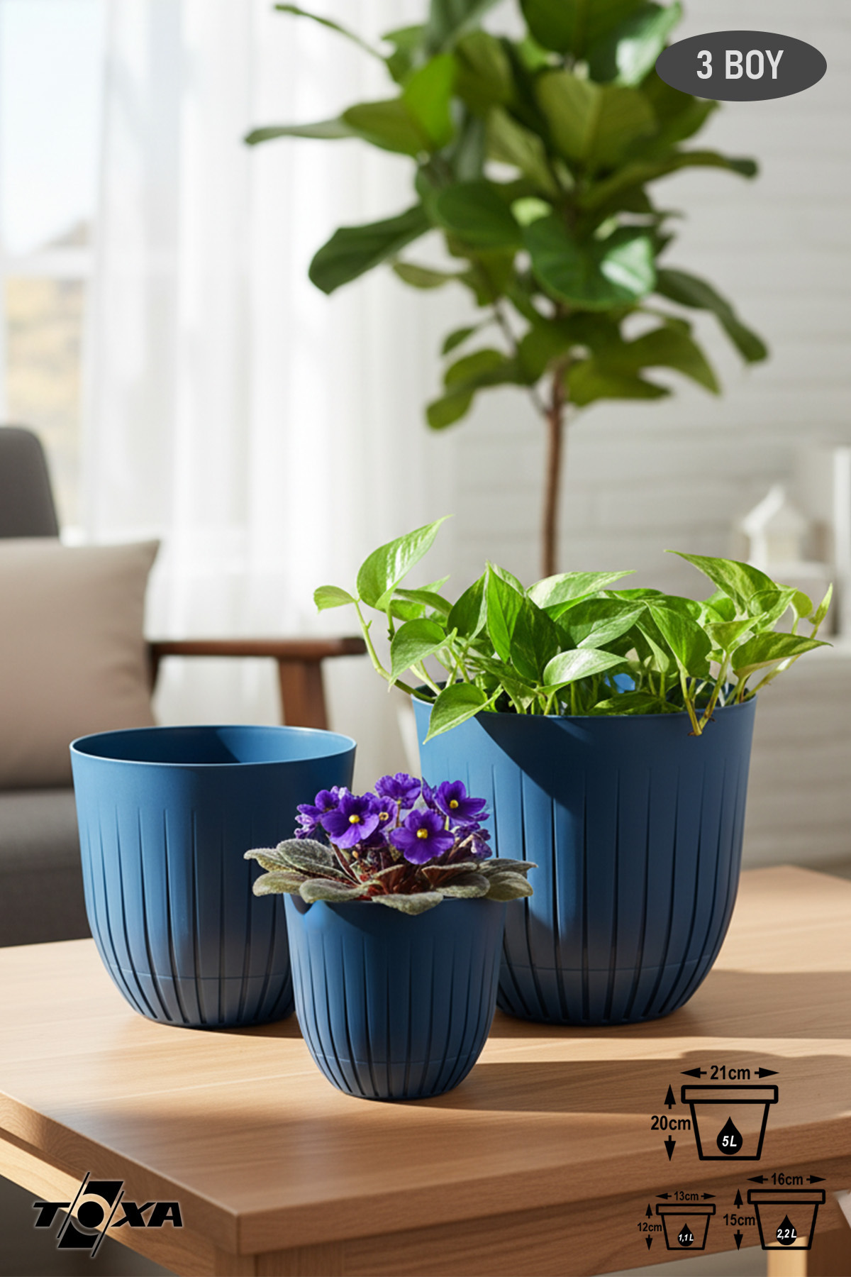 4 Boy Tabaklı Drenaj Delikli Çizgi Saksı Seti Drenajlı Plastik Çiçek Saksısı Set 4 Boy Tabaklı Drenaj Delikli Çizgi Saksı Seti Drenajlı Plastik Çiçek Saksısı Set ToXALine3Boy تک سایز