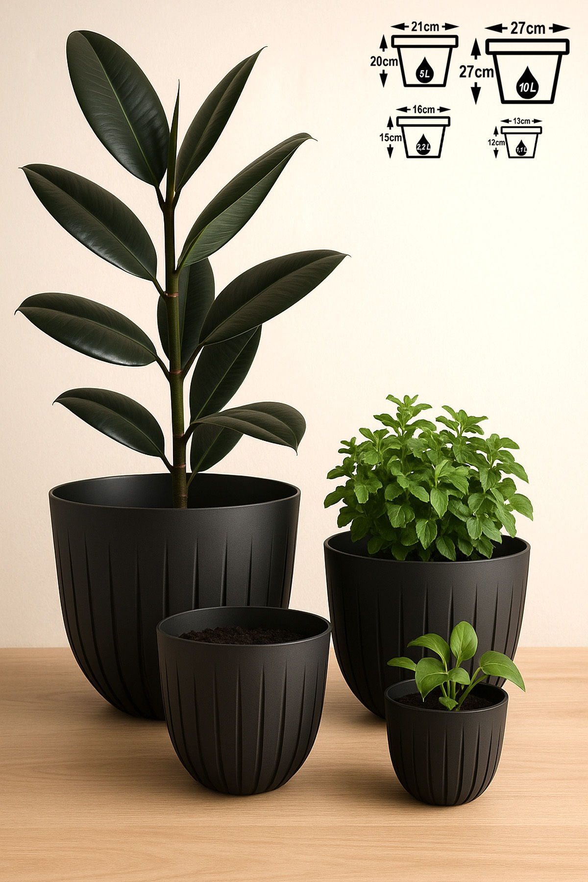3 Boy Tabaklı Drenaj Delikli Çizgi Saksı Seti Drenajlı Plastik Çiçek Saksısı Set 3 Boy Tabaklı Drenaj Delikli Çizgi Saksı Seti Drenajlı Plastik Çiçek Saksısı Set ToXALine4boy تک سایز