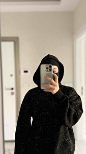 Simli Kar Maskeli Kapüşonlu Oversize 3 İplik Hırka Simli Kar Maskeli Kapüşonlu Oversize 3 İplik Hırka hırkaoveszşsd XL