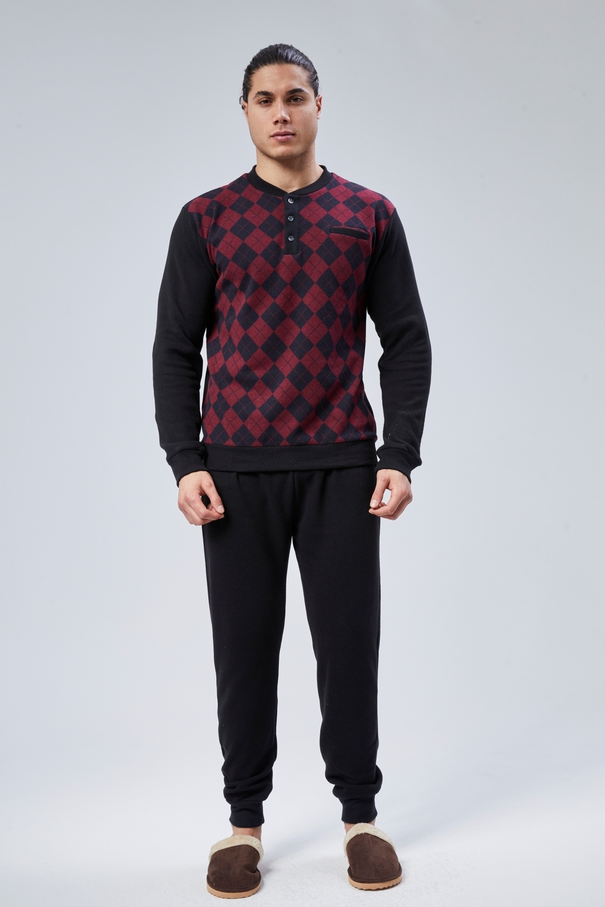 Mooncover Erkek Kışlık Önü Baklava Desenli Pijama Takımı Siyah Mooncover Erkek Kışlık Önü Baklava Desenli Pijama Takımı Siyah HM5113 2XL