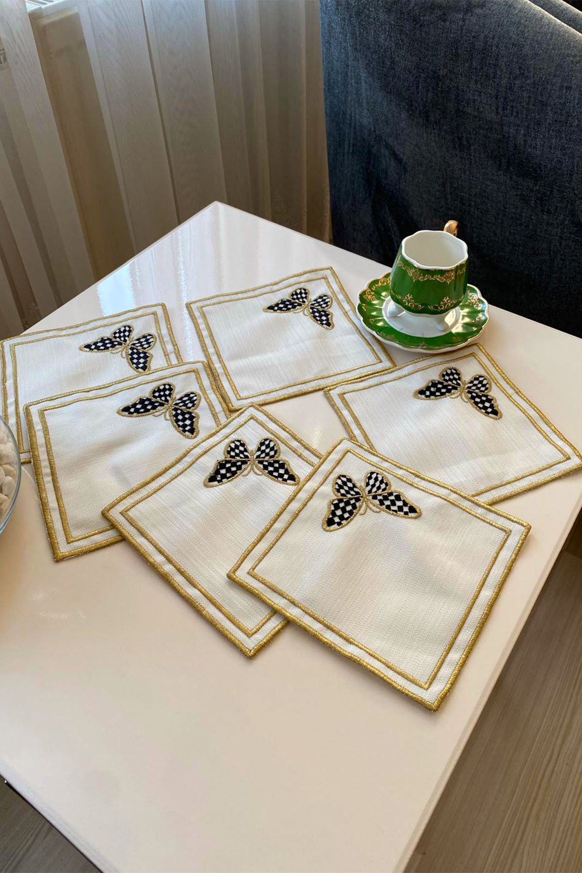 Kelebek Özel Nakışlı Keten Kahve Sunumluk Peçetesi-Siyah/Gold 6-Adet Kelebek Özel Nakışlı Keten Kahve Sunumluk Peçetesi-Siyah/Gold 6-Adet SNM10181 تک سایز
