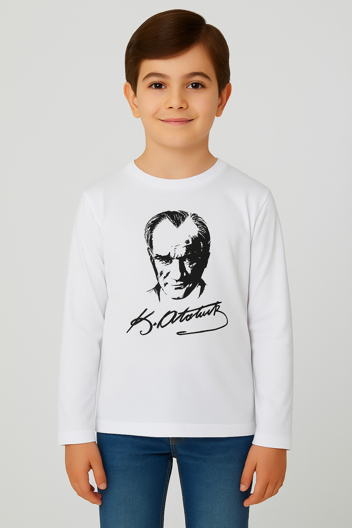 Pamuklu Uzun Kollu Bisiklet Yaka Atatürk Baskılı Tişört Pamuklu Uzun Kollu Bisiklet Yaka Atatürk Baskılı Tişört 6WKB10464TK 13-14 Yaş