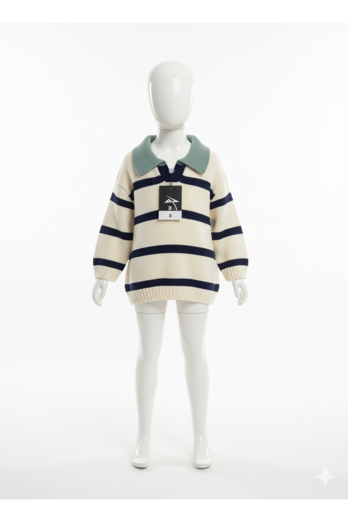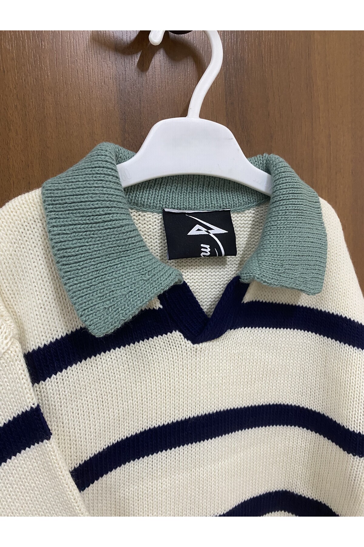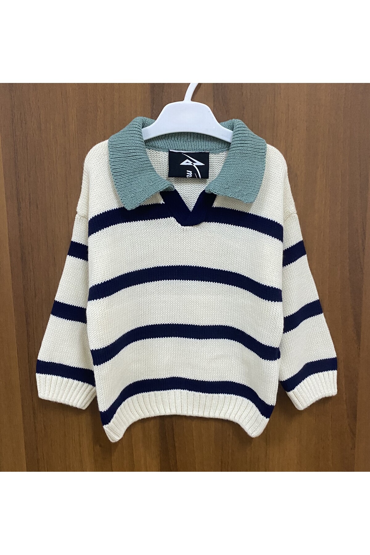 Kids Ekru Polo Yaka Çizgili Triko Kazak Kids Ekru Polo Yaka Çizgili Triko Kazak KDS-KZK-2522 3-4 Yaş
