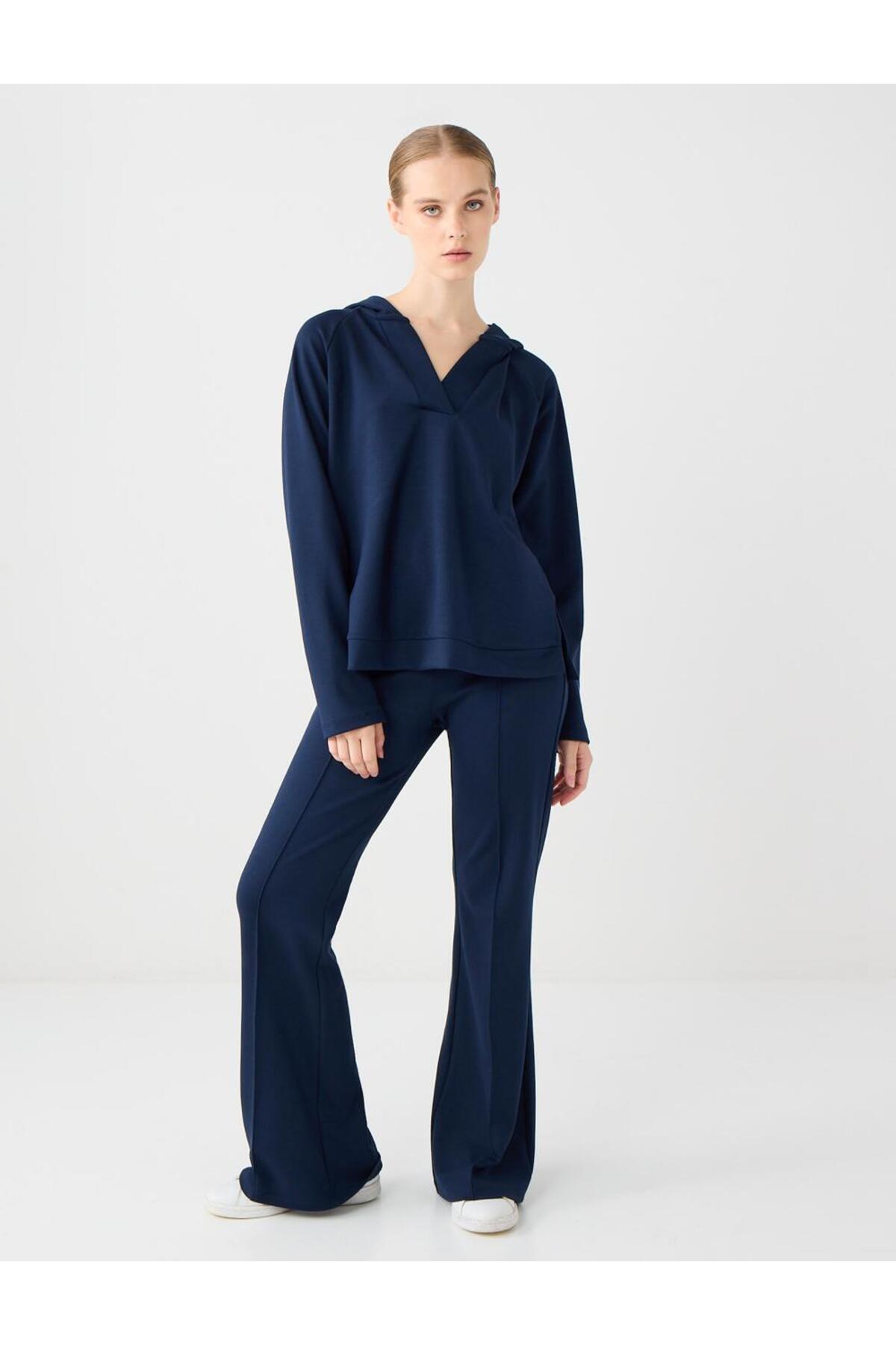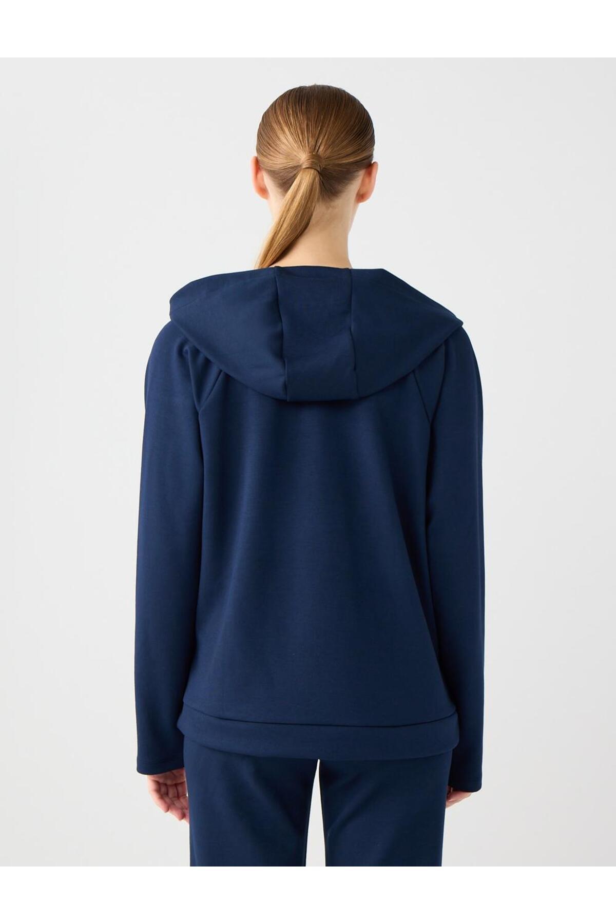Lacivert Uzun Kollu Kapüşonlu Örme Sweatshirt Lacivert Uzun Kollu Kapüşonlu Örme Sweatshirt 5WW235917 XL