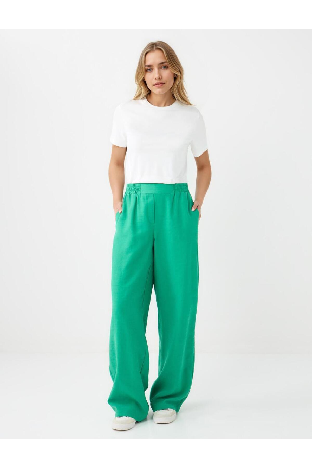 Mavi Normal Paça Beli Lastikli Dokuma Pantolon Mavi Normal Paça Beli Lastikli Dokuma Pantolon 5WW185330 XL