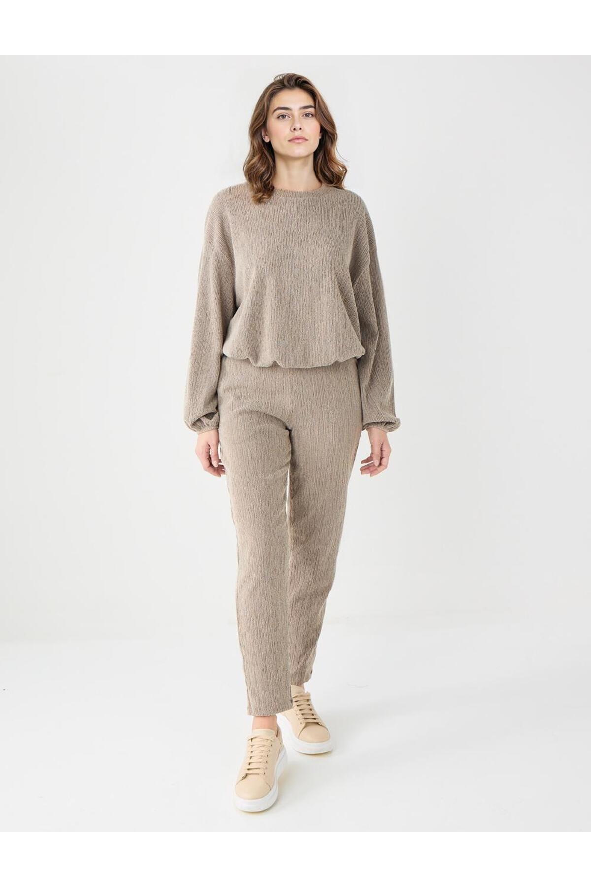 Antrasit Yüksek Bel Bol Paça Dokuma Pantolon Antrasit Yüksek Bel Bol Paça Dokuma Pantolon 5WW185688 XL