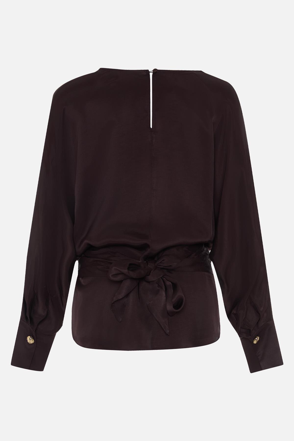 Çikolata Belden Bağlama Detaylı Uzun Kollu Bluz Çikolata Belden Bağlama Detaylı Uzun Kollu Bluz ST20250W30141501 XL