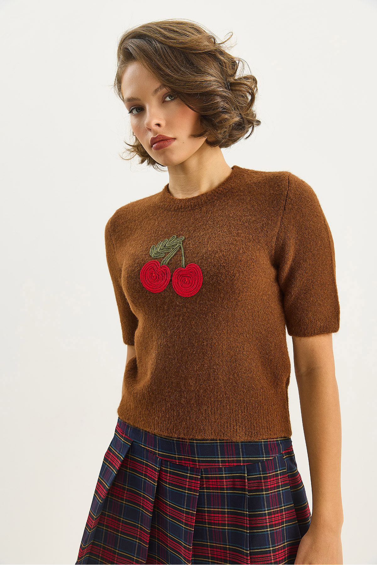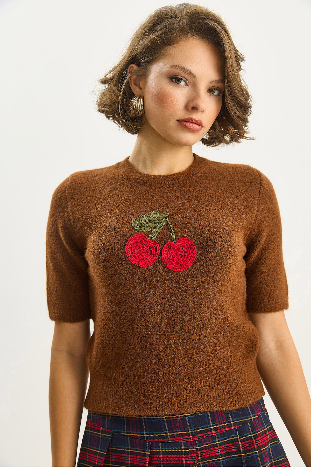 Kadın Bisiklet Yaka Kısa Kollu Kiraz Örgü Nakış İşlemeli Triko Bluz 5079 60283588 Kadın Bisiklet Yaka Kısa Kollu Kiraz Örgü Nakış İşlemeli Triko Bluz 5079 60283588 Standart