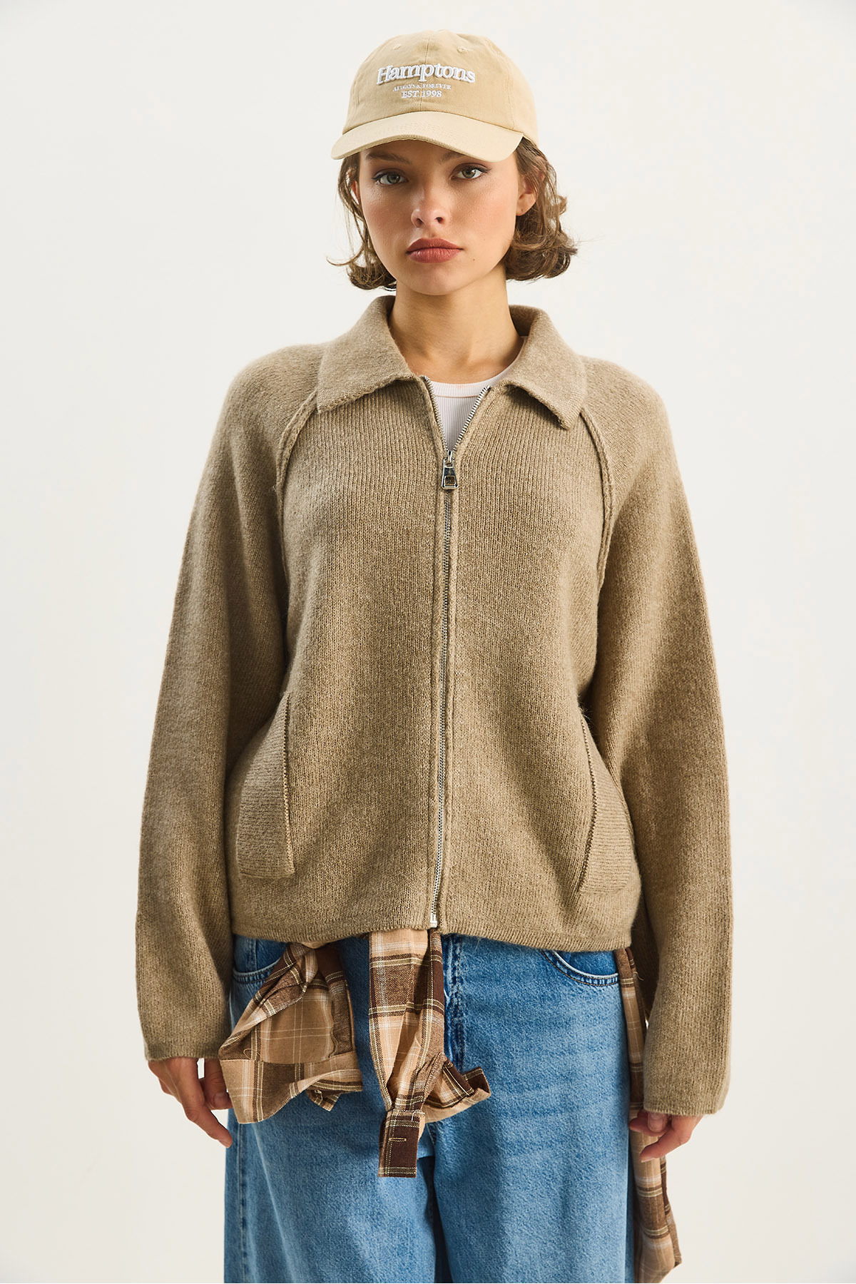 Kadın Önden Fermuarlı Polo Yaka Relaxed Triko Ceket Hırka 4904 60283590 Kadın Önden Fermuarlı Polo Yaka Relaxed Triko Ceket Hırka 4904 60283590 Standart