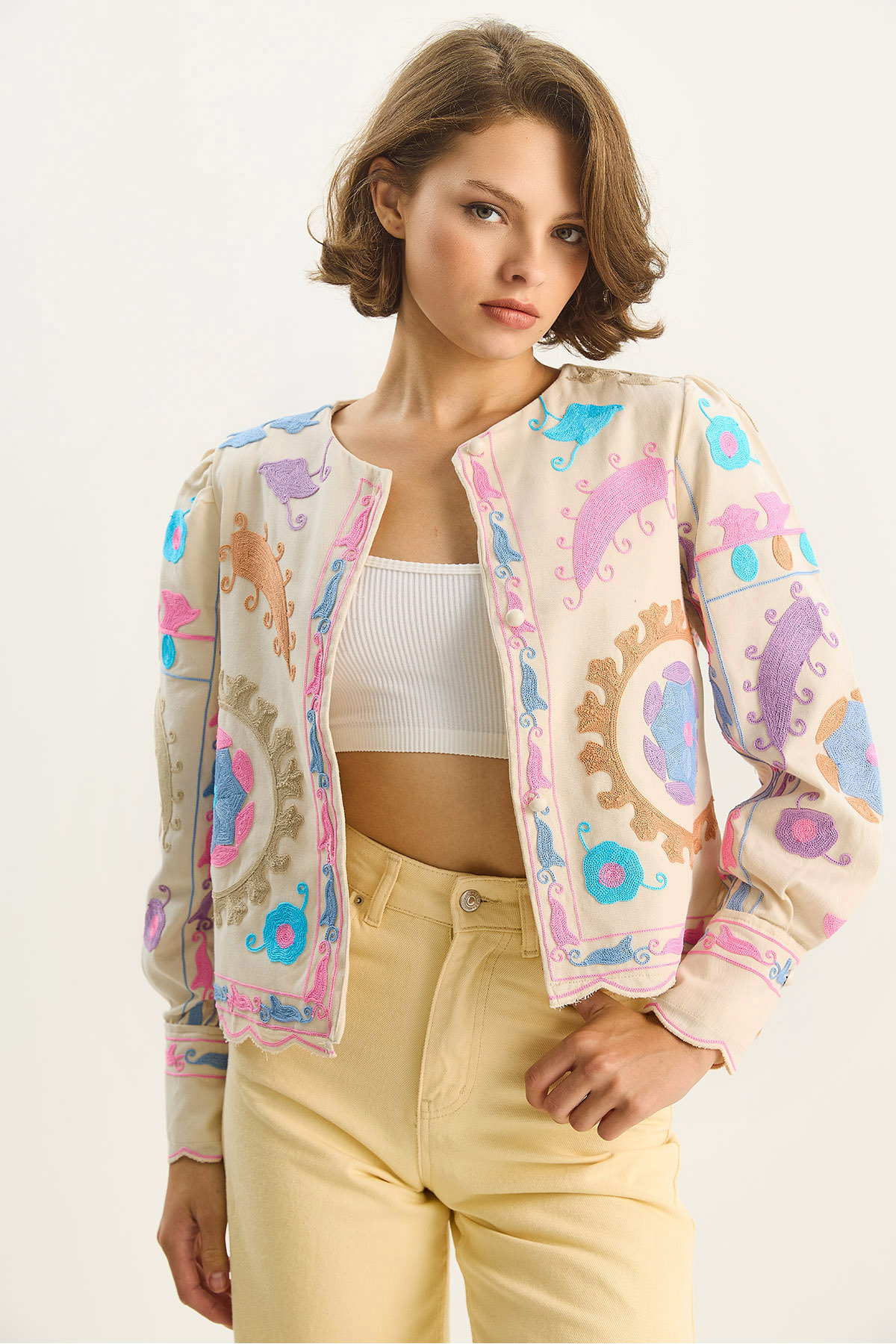Kadın Etnik Desen Süzene Nakış İşlemeli Uzun Kollu Gabardin Ceket 3001 60283592 Kadın Etnik Desen Süzene Nakış İşlemeli Uzun Kollu Gabardin Ceket 3001 60283592 L