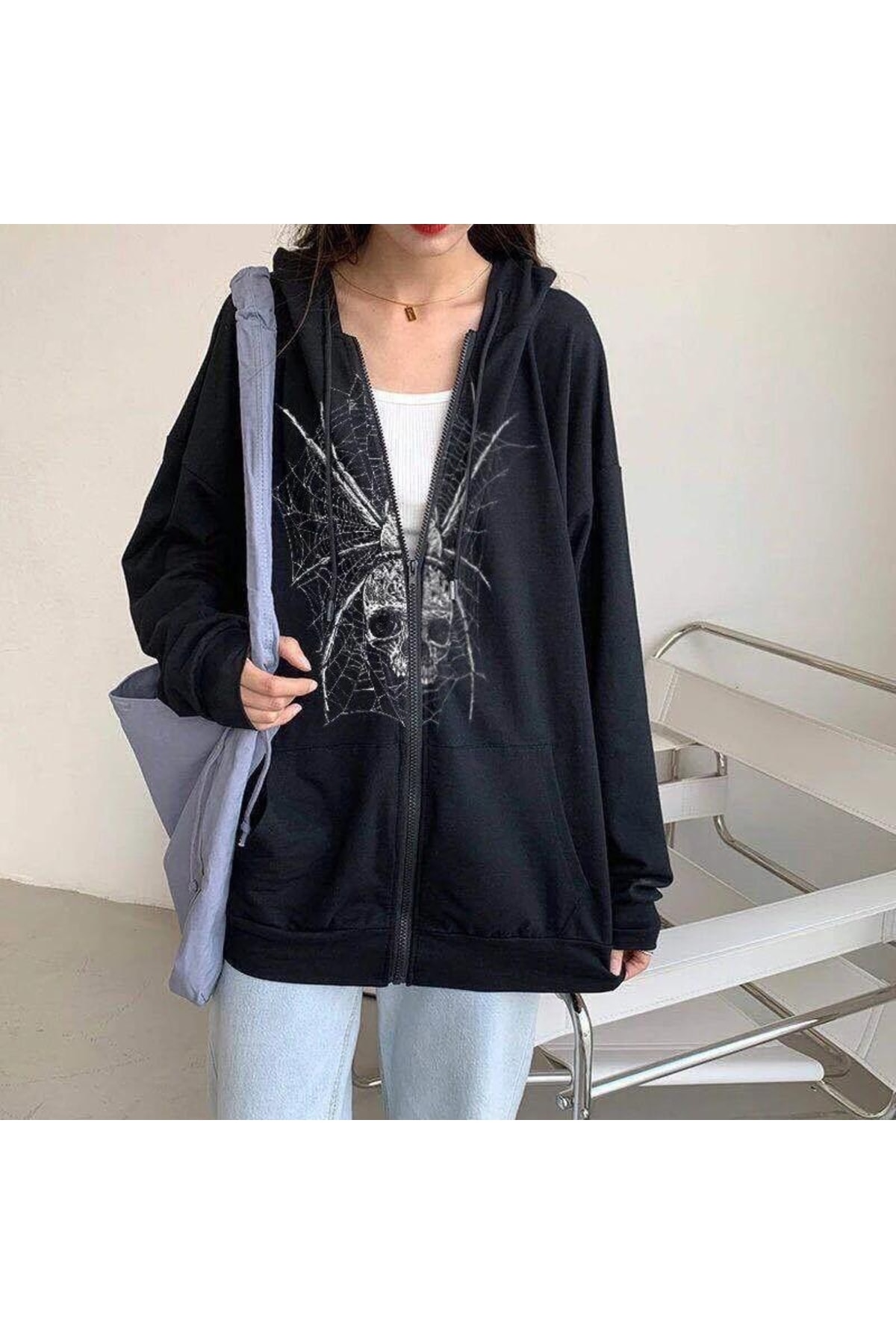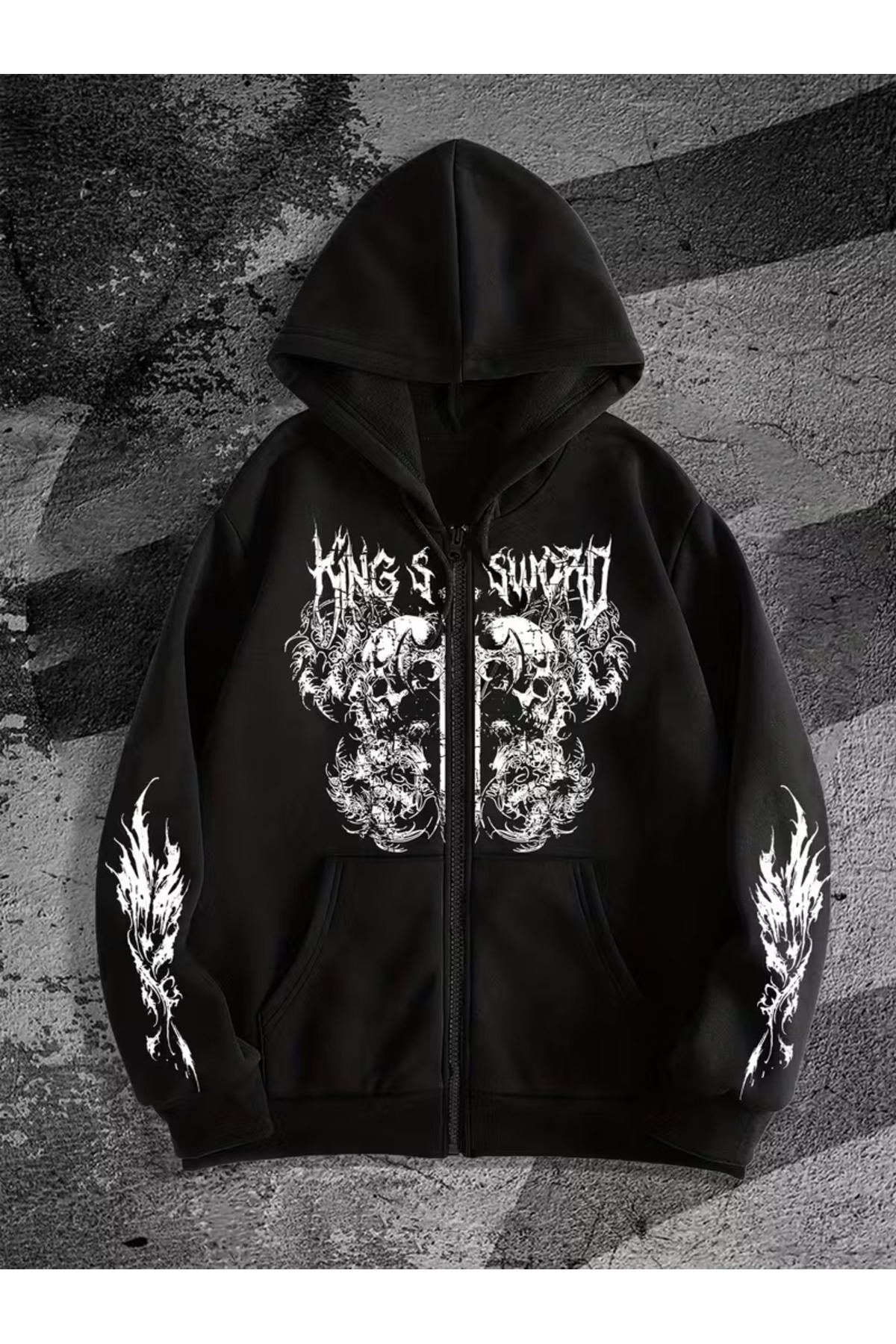 Gothic Design Oversize Fermuarlı Siyah Unisex Kapüşonlu Hırka Gothic Design Oversize Fermuarlı Siyah Unisex Kapüşonlu Hırka GTH2sxSZ L/XL
