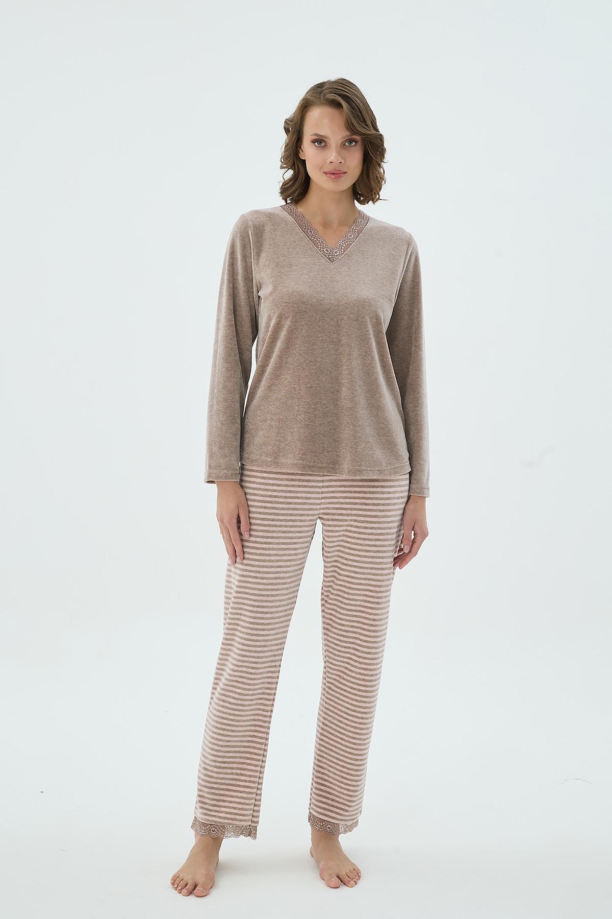 Kadın Uzun Kollu Rose Renk Kadife Pijama Takımı C7T7N171 Kadın Uzun Kollu Rose Renk Kadife Pijama Takımı C7T7N171 329025 XL