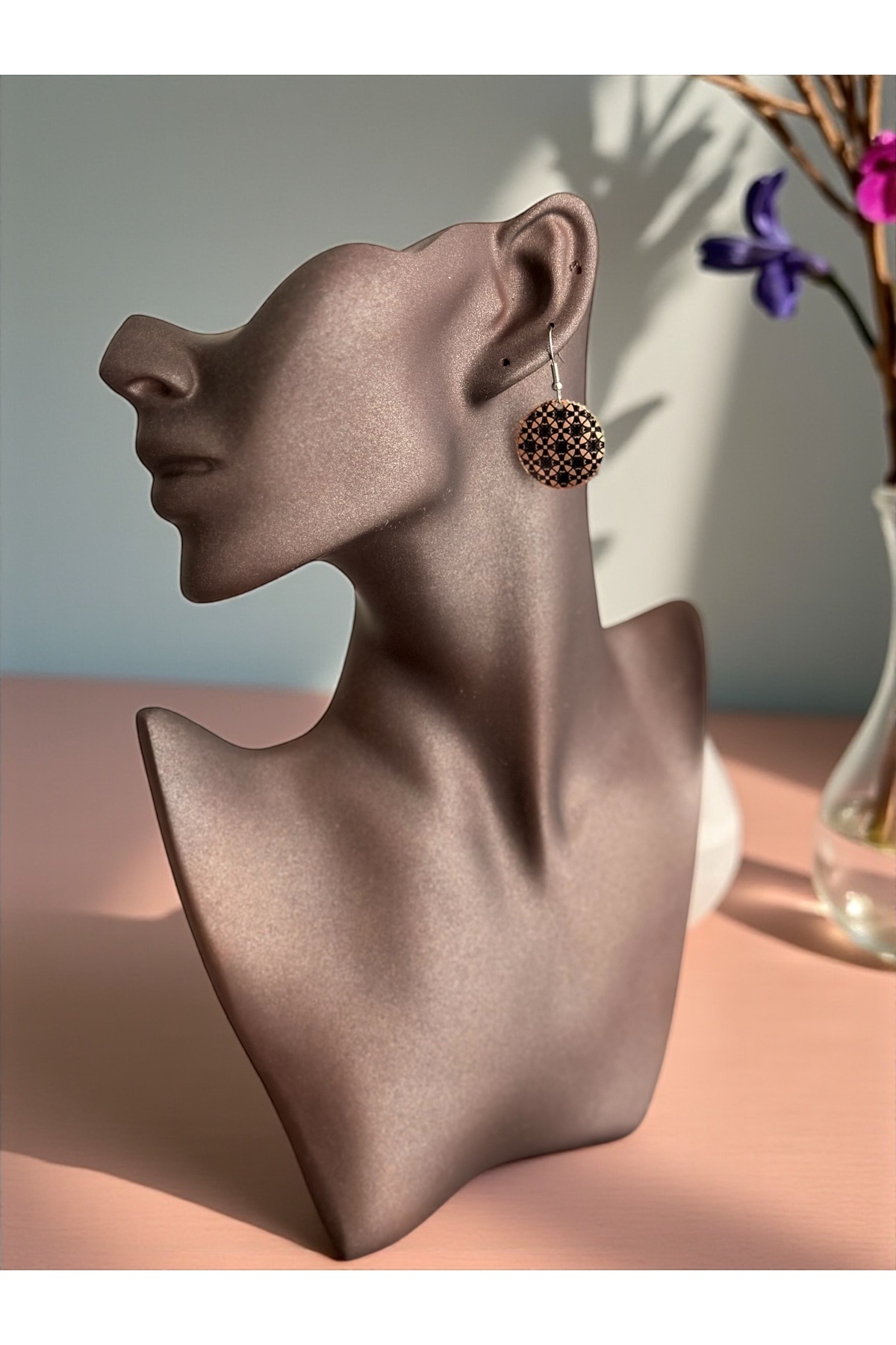 El Yapımı Bakır Küpe Geometrik Desenli Yuvarlak – Siyah & Bakır El Yapımı Bakır Küpe Geometrik Desenli Yuvarlak – Siyah & Bakır EBBK00019 تک سایز