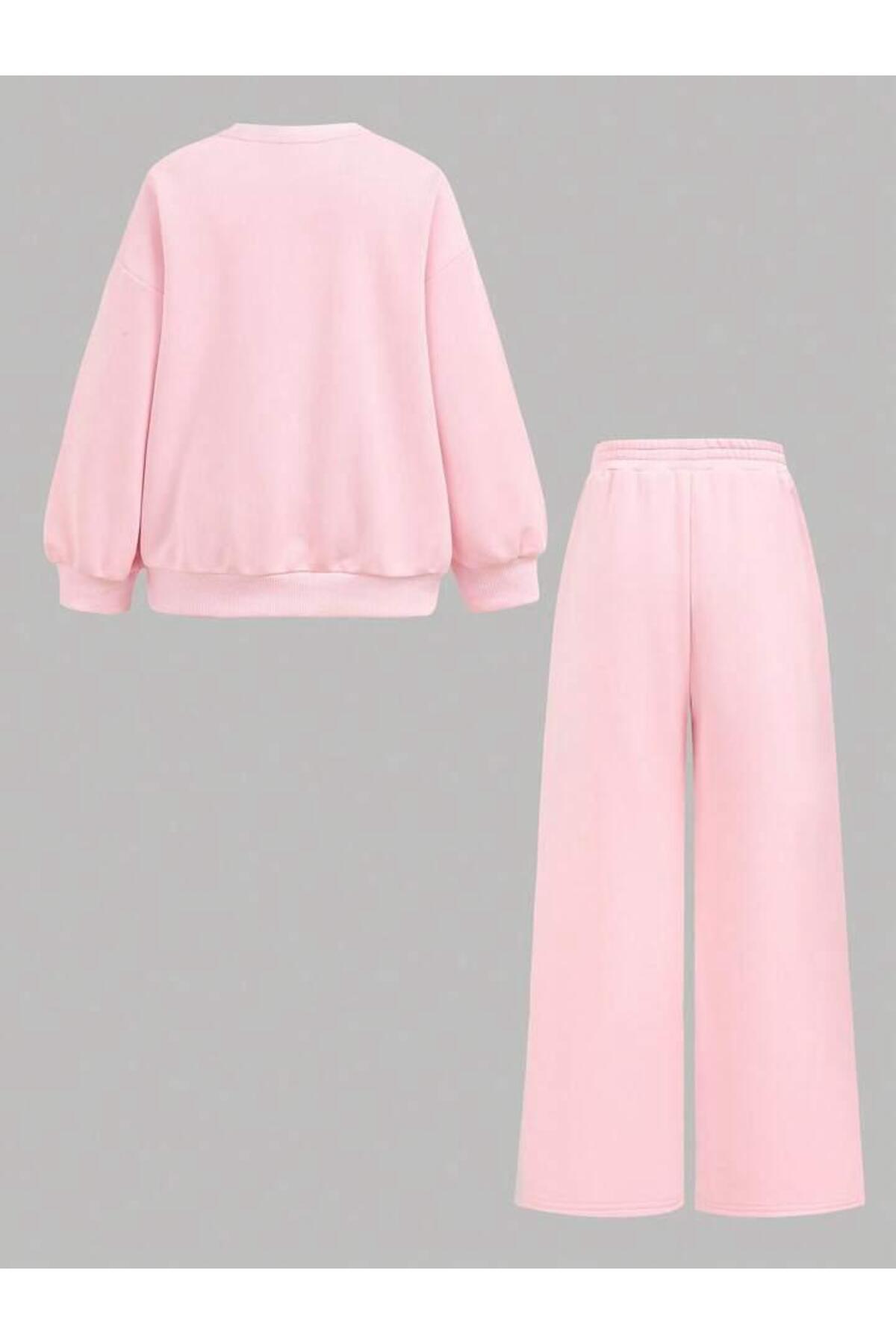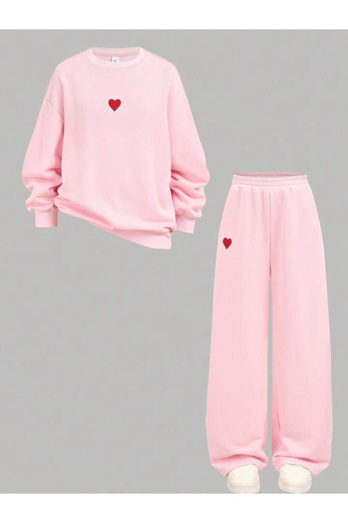 Kız Çocuk Kalp Baskılı Pembe Bisiklet Yaka Sweatshirt-Bol Kesim Pembe Eşofman Altı Takım Kız Çocuk Kalp Baskılı Pembe Bisiklet Yaka Sweatshirt-Bol Kesim Pembe Eşofman Altı Takım fitil25 13-14 Yaş