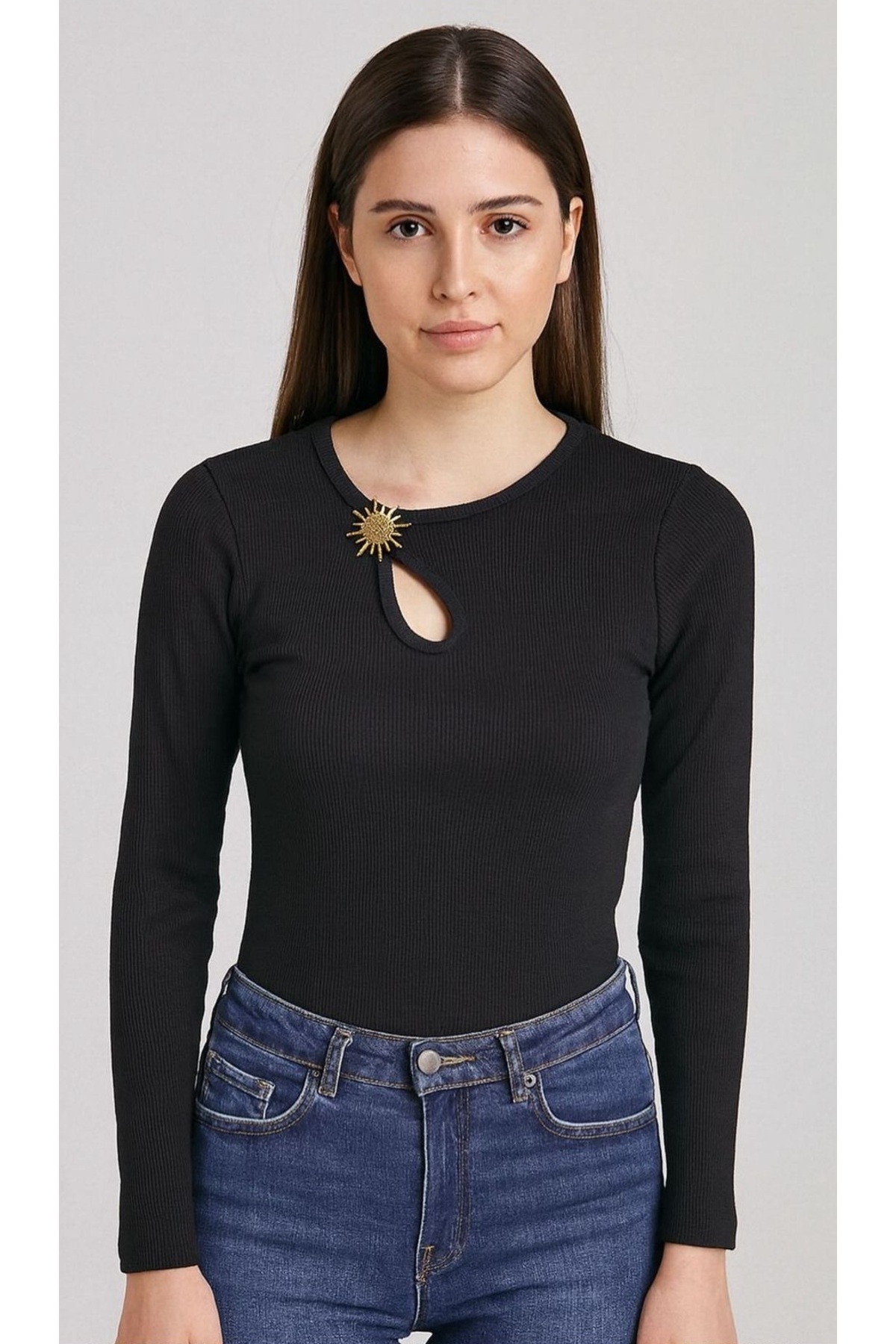 Kadın Siyah Beyaz Polo Yaka Fitilli Örme Bluz Kadın Siyah Beyaz Polo Yaka Fitilli Örme Bluz CHUPA0032 S/M