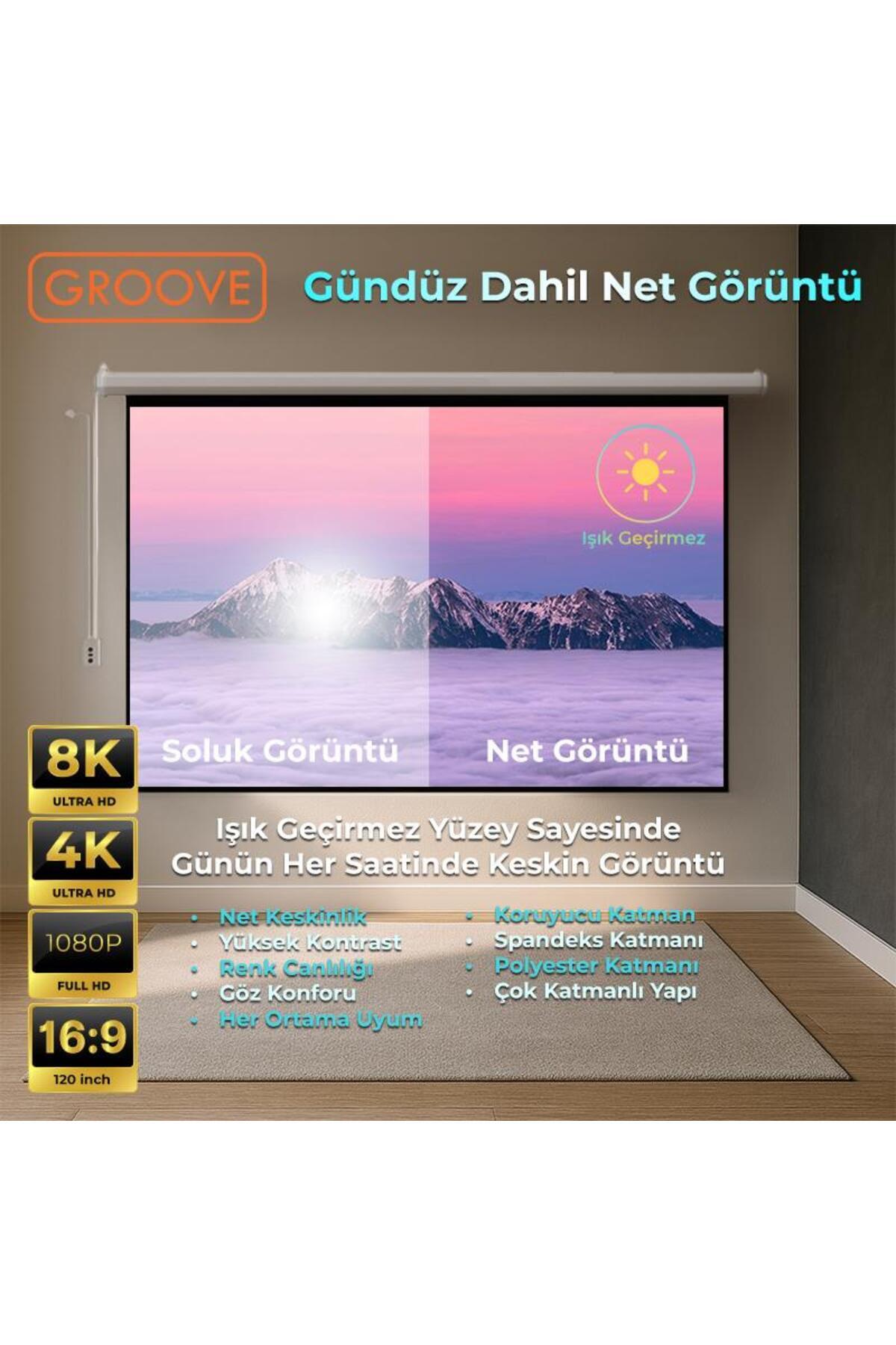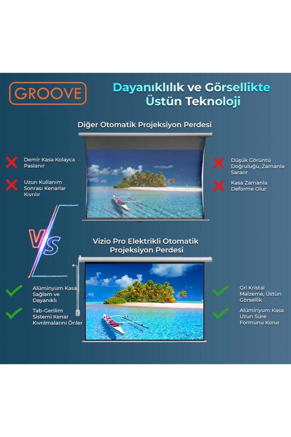 Vizio Pro 120¨ Inch Blackout Işık Geçirmez Elektrikli Otomatik Kumandalı Projeksiyon Perdesi Vizio Pro 120¨ Inch Blackout Işık Geçirmez Elektrikli Otomatik Kumandalı Projeksiyon Perdesi GROOVE/120INCH-AUTO تک سایز