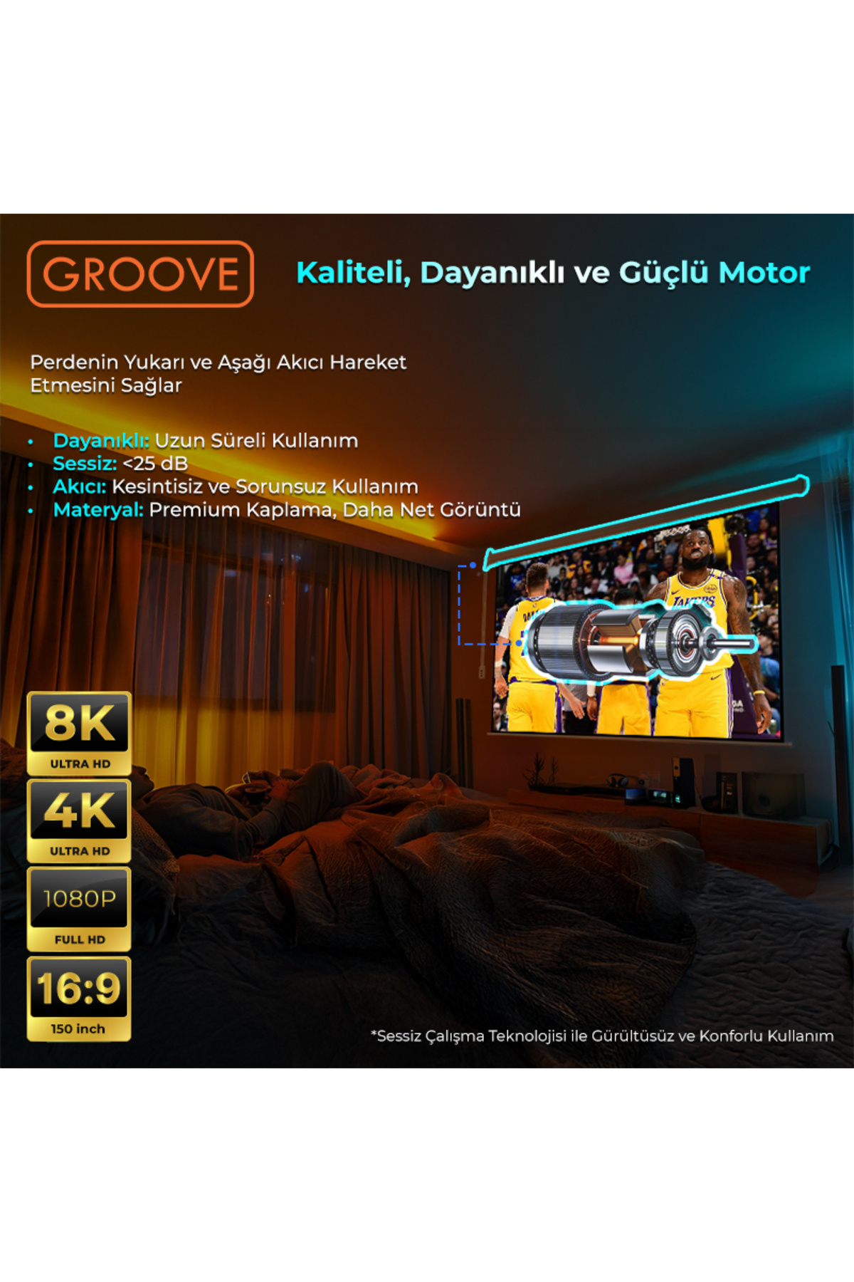 Vizio Pro 150¨ Inch Blackout Işık Geçirmez Elektrikli Otomatik Kumandalı Projeksiyon Perdesi Vizio Pro 150¨ Inch Blackout Işık Geçirmez Elektrikli Otomatik Kumandalı Projeksiyon Perdesi GROOVE/150INCH-AUTO تک سایز