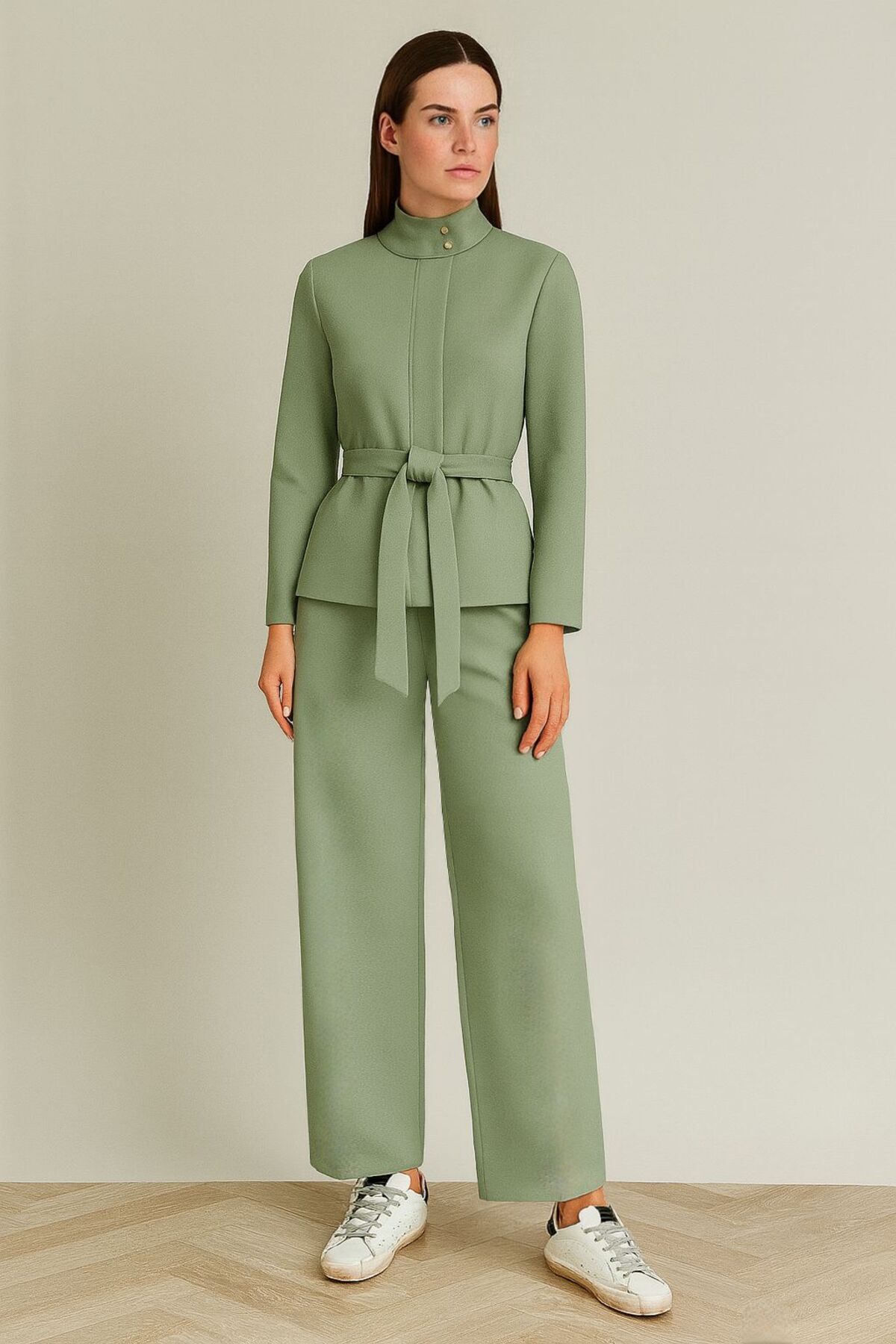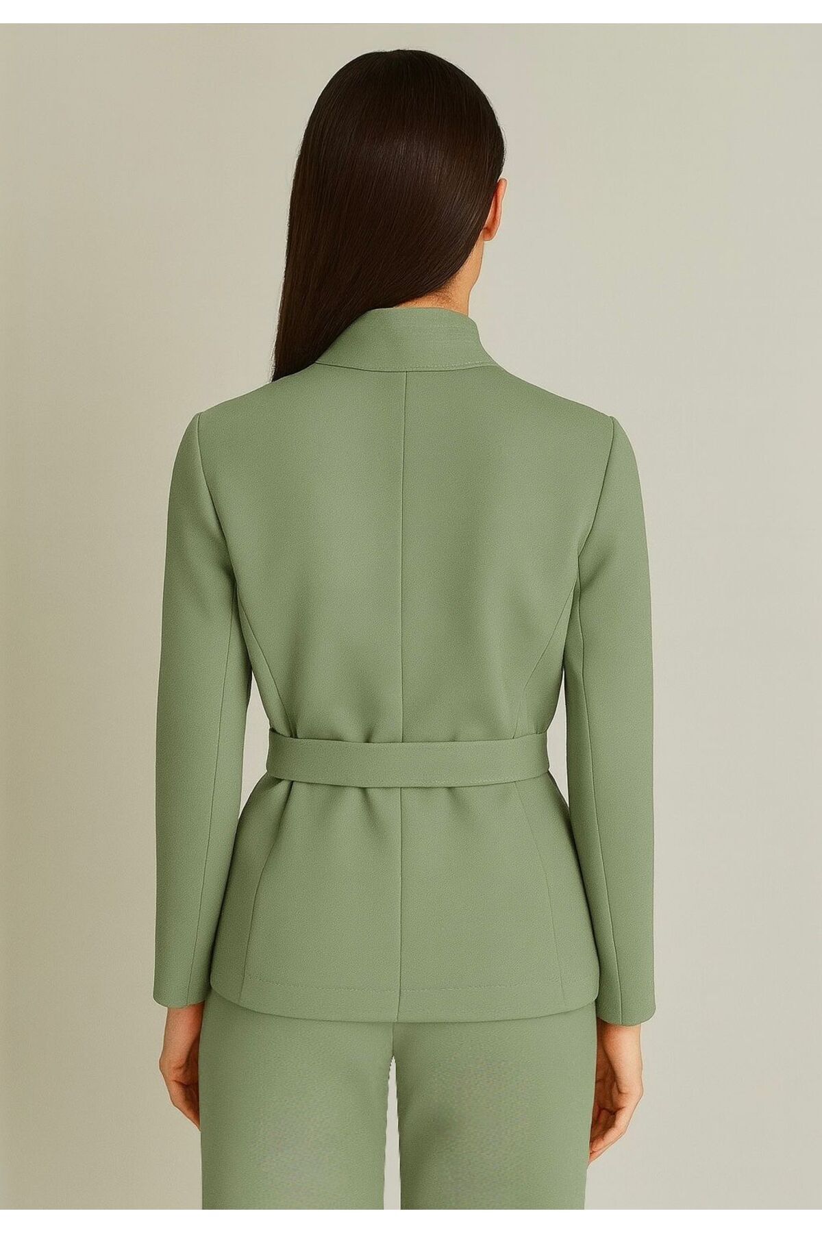 Kuşaklı yüksek yaka ceket premium kumaş Kuşaklı yüksek yaka ceket premium kumaş elbikomceket0004 XL