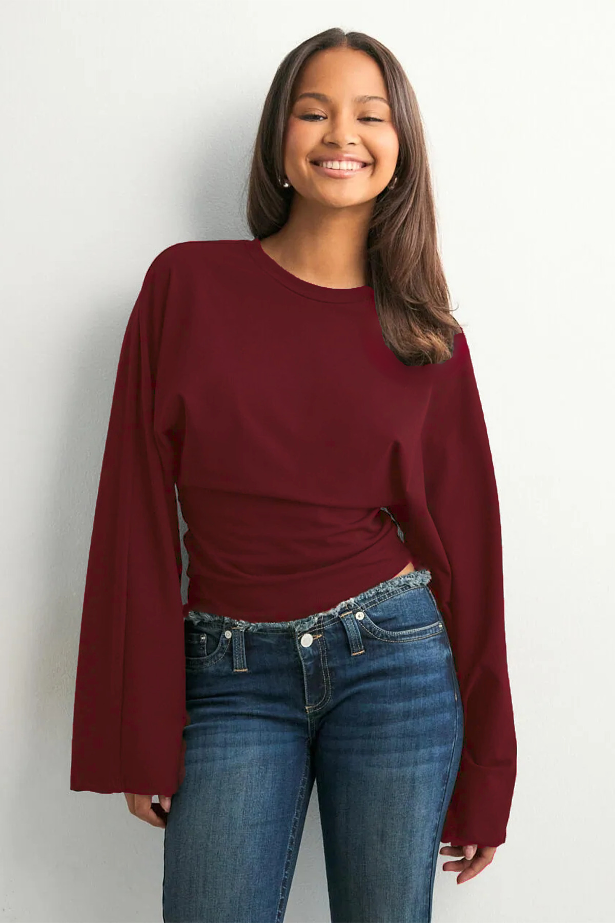 Uzun Kollu Asimetrik Yaka Drapeli Yan Bağlamalı örme Bluz Uzun Kollu Asimetrik Yaka Drapeli Yan Bağlamalı örme Bluz cey123 L