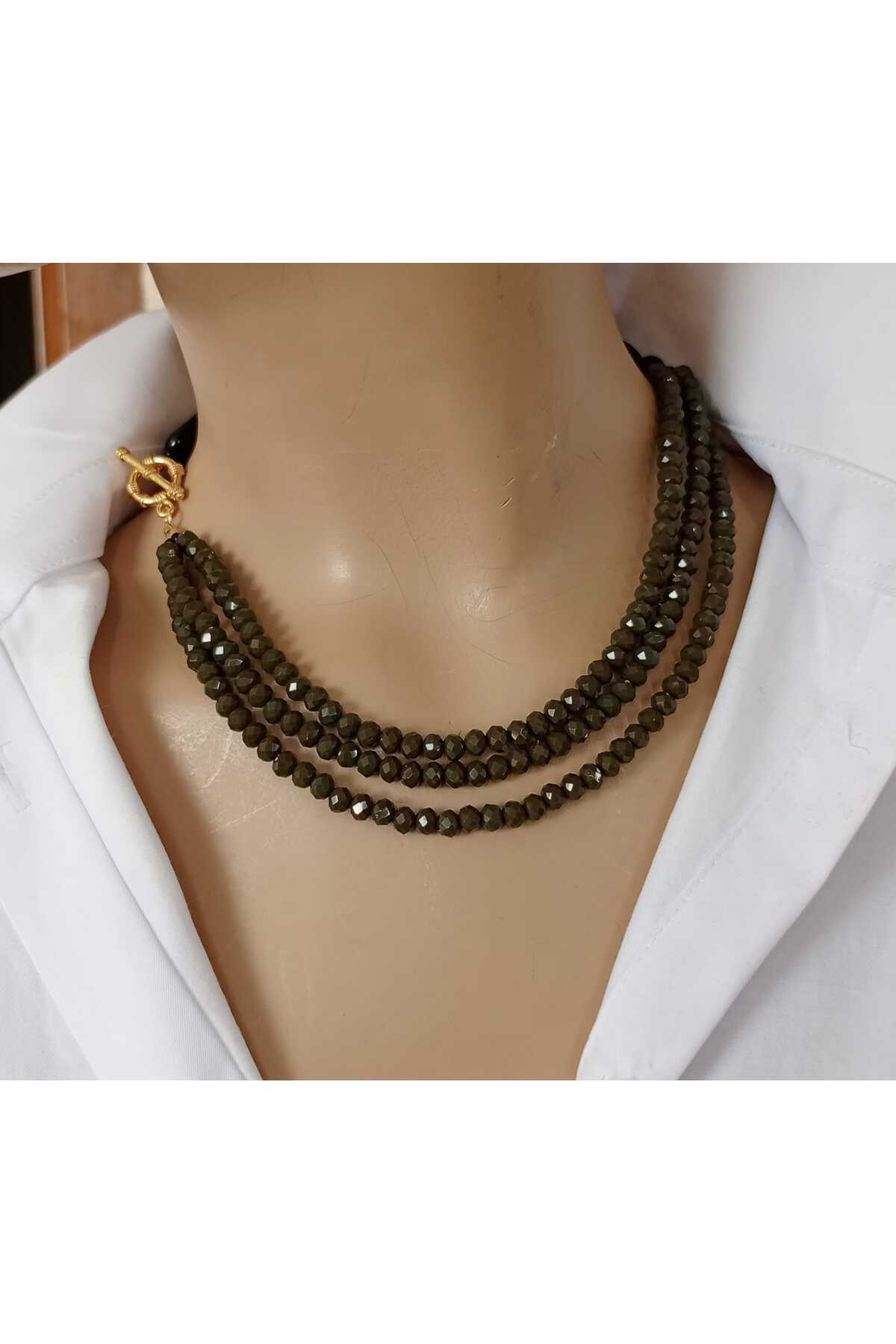 Siyah Damla Kristal Kesim Oniks Taşı ve Haki Kristal Boncuklu Tasarım Kolye Siyah Damla Kristal Kesim Oniks Taşı ve Haki Kristal Boncuklu Tasarım Kolye dkotkb01 40 cm